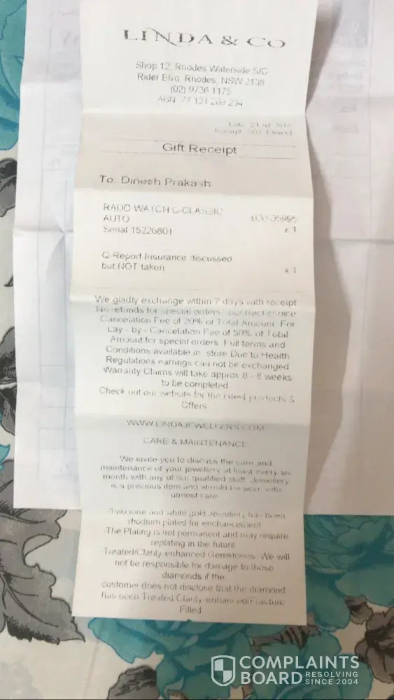 This is regarding a disappointing, unpleasant and disconcerting experience with a rado coupole classic automatic watch. I bought this watch from linda & co (rider boulevard, rhodes, new south wales 2138, australia).