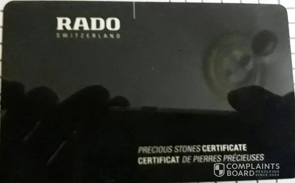 I might loose the trust on RADO. I am very disappointed with the quality of the product and service of your company. I am disappointed with this watch. Please replace the watch and give me a better new one. Please take care of your Customer because they are the only reason of your Goodwill. I hope that this will not happen to any Customer. I'm going to the consumer court for your company.
