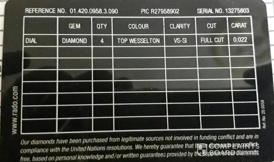 rado diastar watch, reference 01.152.0748.3.070, serial number [protected]