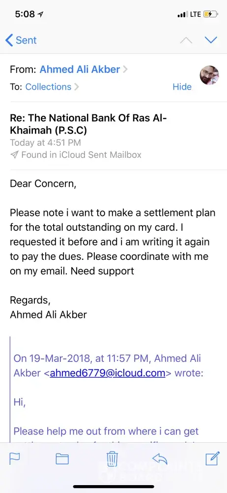 I changed my job and i joined my new organisation. It took me total 3months to join after resigning and i got my salary after 4 months. Still in these months somehow i manage to pay my card minimum amount. Last month i paid AED 675 and his month i was totally blasted due to other commitments. I requested to the agent for settlement plan but they said first i have to pay this 1600 then they will proceed. I tried to send emails but no response and now i got msg that they are proceeding with my security cheque. I am so shocked with all of this treatment please find the attachment for emails and contact me on below email id.