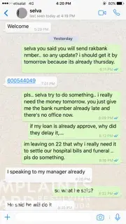 The reason why I applied for loan is for mother in law's treatment. The time that I needed the money, they cannot release it because of the document that is computer generated because I am working in SEHA and all our documents are computer generated (but with stamp and signature). So I have decided to cancel the loan because I cannot have the money when I am going home to Philippines. Then I was surprised that they released it when I came back from Philippines and I don't need the money anymore and was decided to cancel it. But they still released the money. So they are not listening to the client and just thinking about their job that they can get money from their client. There is no customer care. Hoping for your immediate action to these agent and the manager who handled my loan.