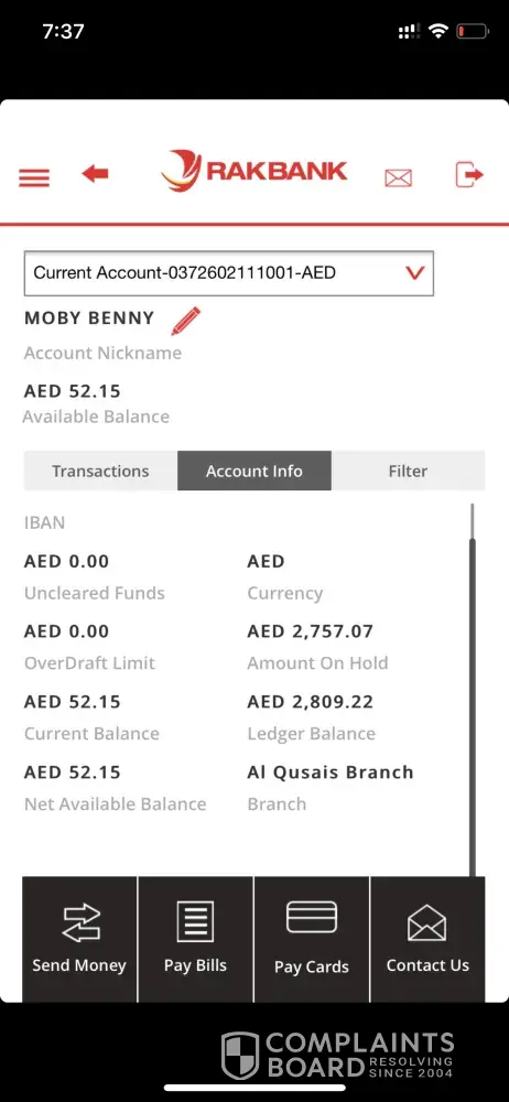 Please note the attached non liability letter from RAK bank, for your reference, But RAK is stupidly holding my excess amount after issued a non liability. Which is the amount of 2757.07 dirhams. So what you people mean by a non liability letter, and what kind of rights you have to hold my money in your bank.