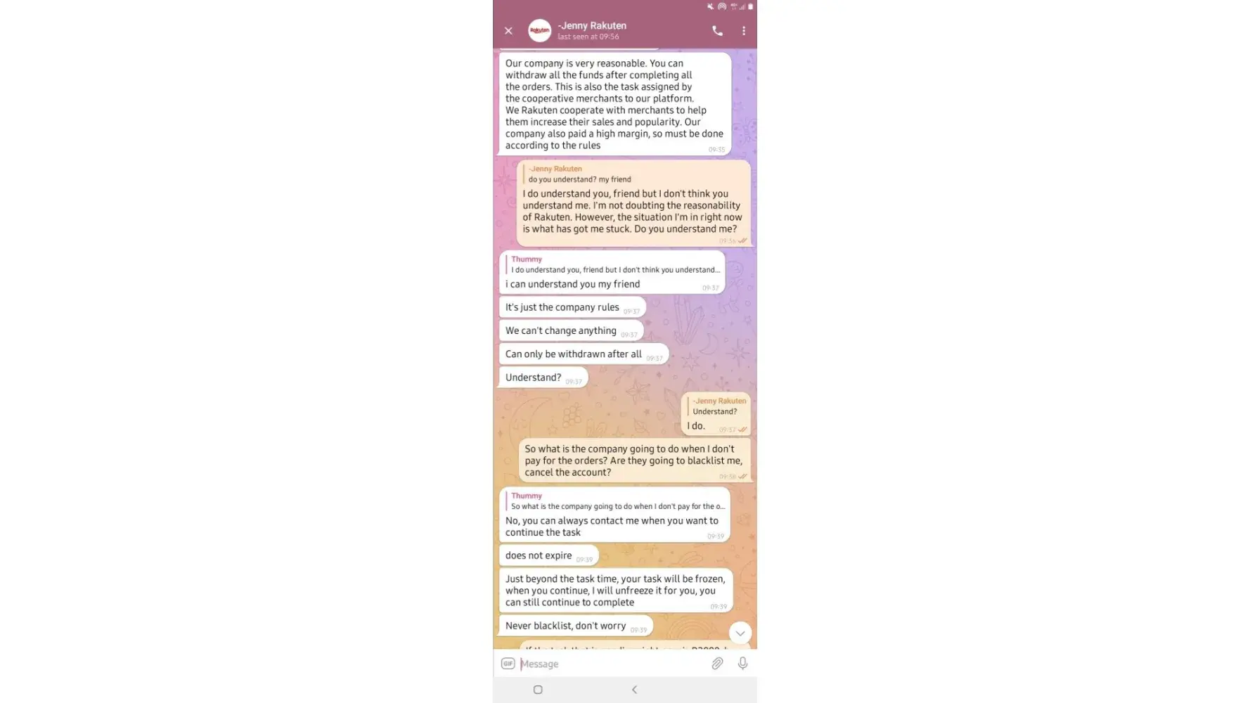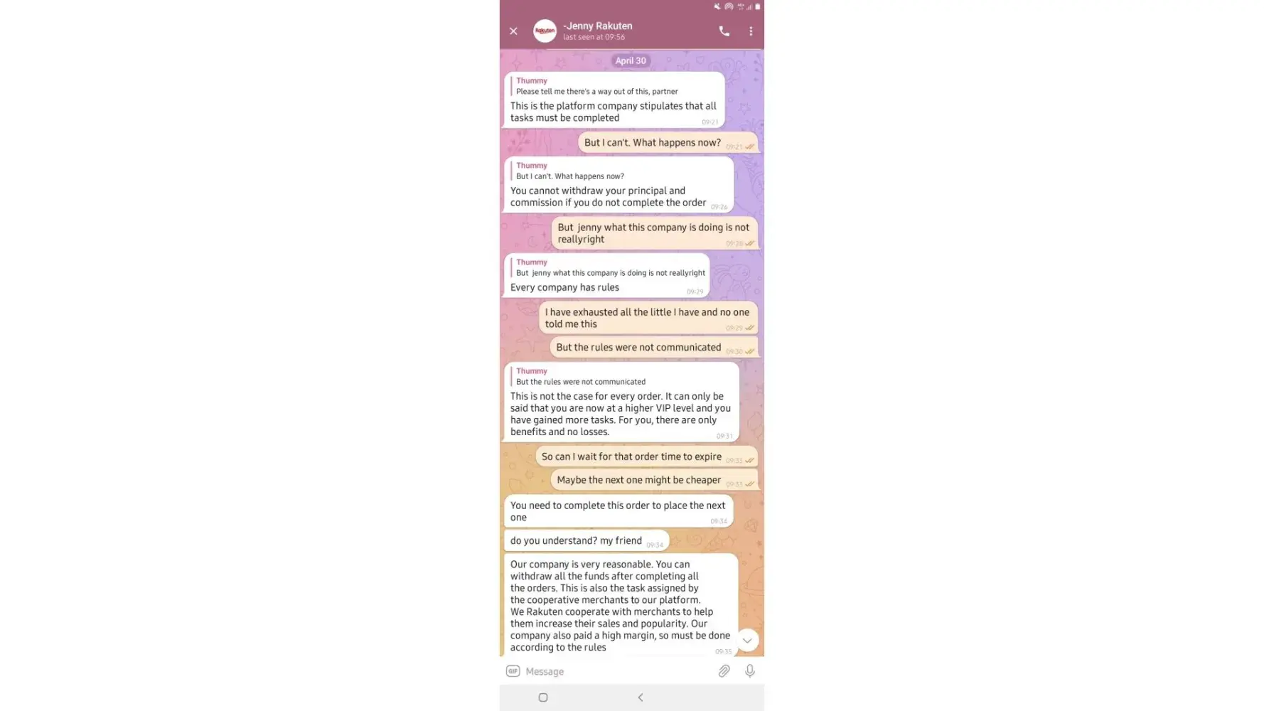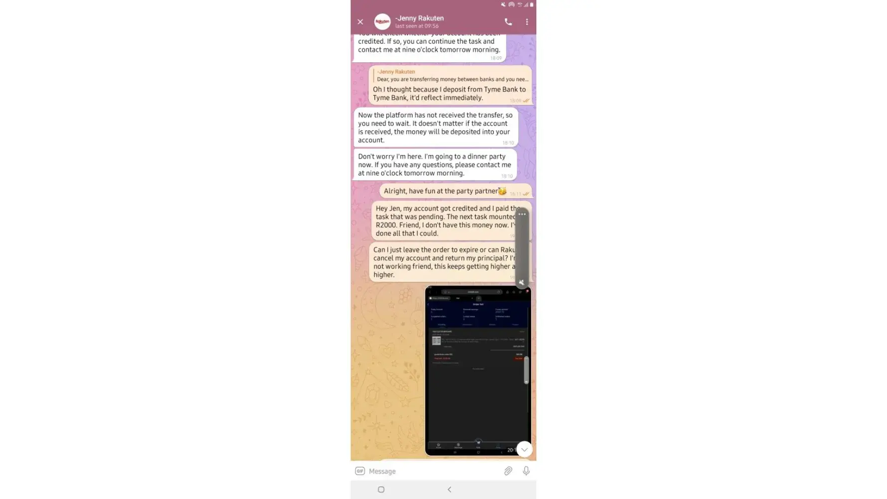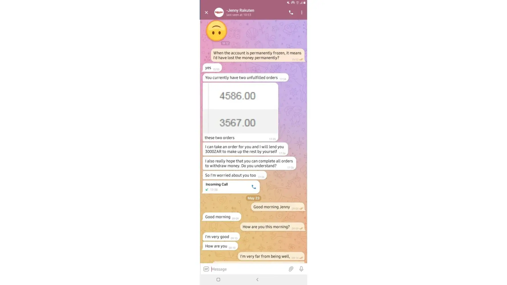on 02/05/2022. which means losing all the money I put in which is R6 432. I have fully completed 7 orders and I'm left with one. Replenishing to pay for orders was not communicated by the customer service before I started this mission, I only got to know about it when it happened and I was told it was normal because the system just dispatches orders.