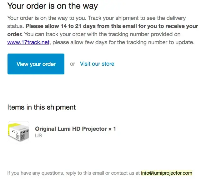 I ordered a Lumi Projector from lumiprojector.com on October 14th. It seemed like a reputable company, considering the domain name matched the item I was buying.