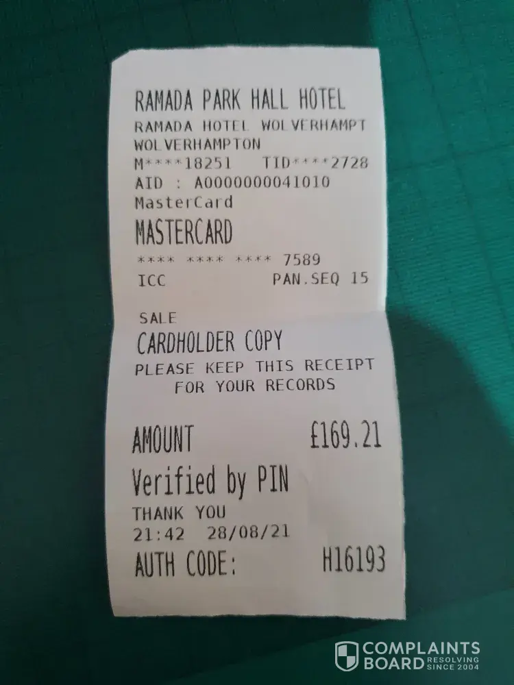 I asked to speak to management and no one was available until the next morning. On the morning of Monday, 30th August I requested to speak to the duty manager, Tom who took notes about this issue. He promised to get back to me on the same day after carrying out his own investigations. I received a call from Tom and was informed by him that his findings were satisfactory and there was nothing else he could do for us and the amount of £169 we paid for 2 nights was satisfactory without breakfast.