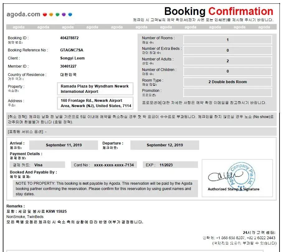 I recently had a very frustrating and extremely costly experience with your hotel. I feel that I am owed compensation from Ramada Windham Hotels for my expenses. On September 6, 2019(5 days before check-in day), I was confirmed on Ramada Plaza by Wyndham Newark International Airport. I was traveling to trip I had prepared for 2 months that was for 2 week...