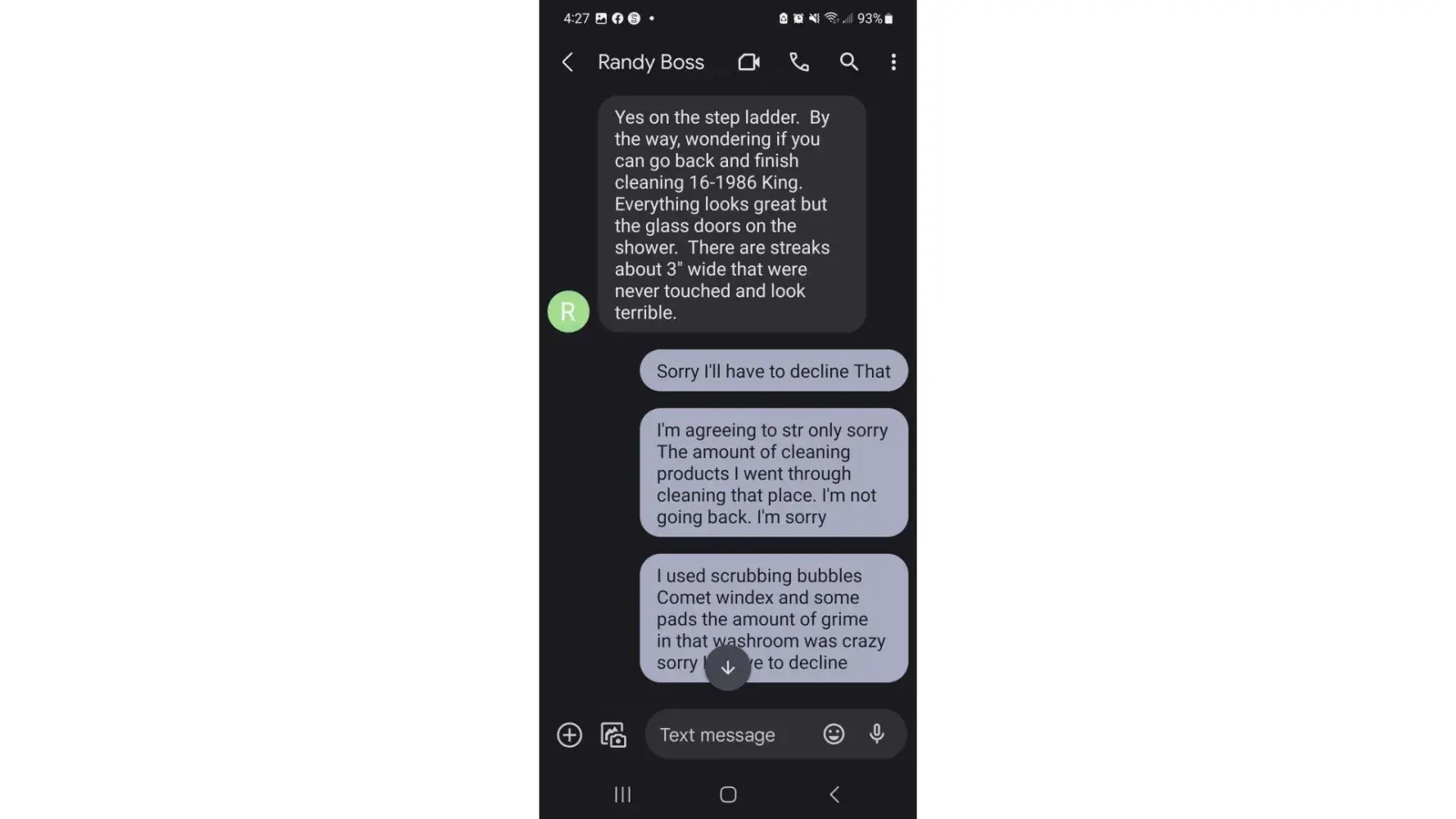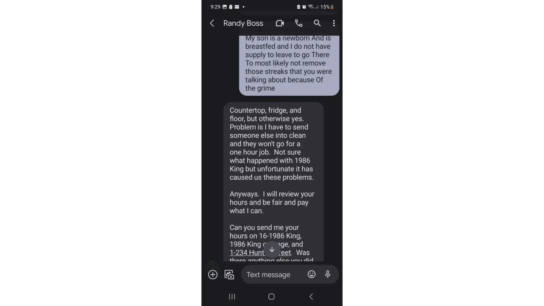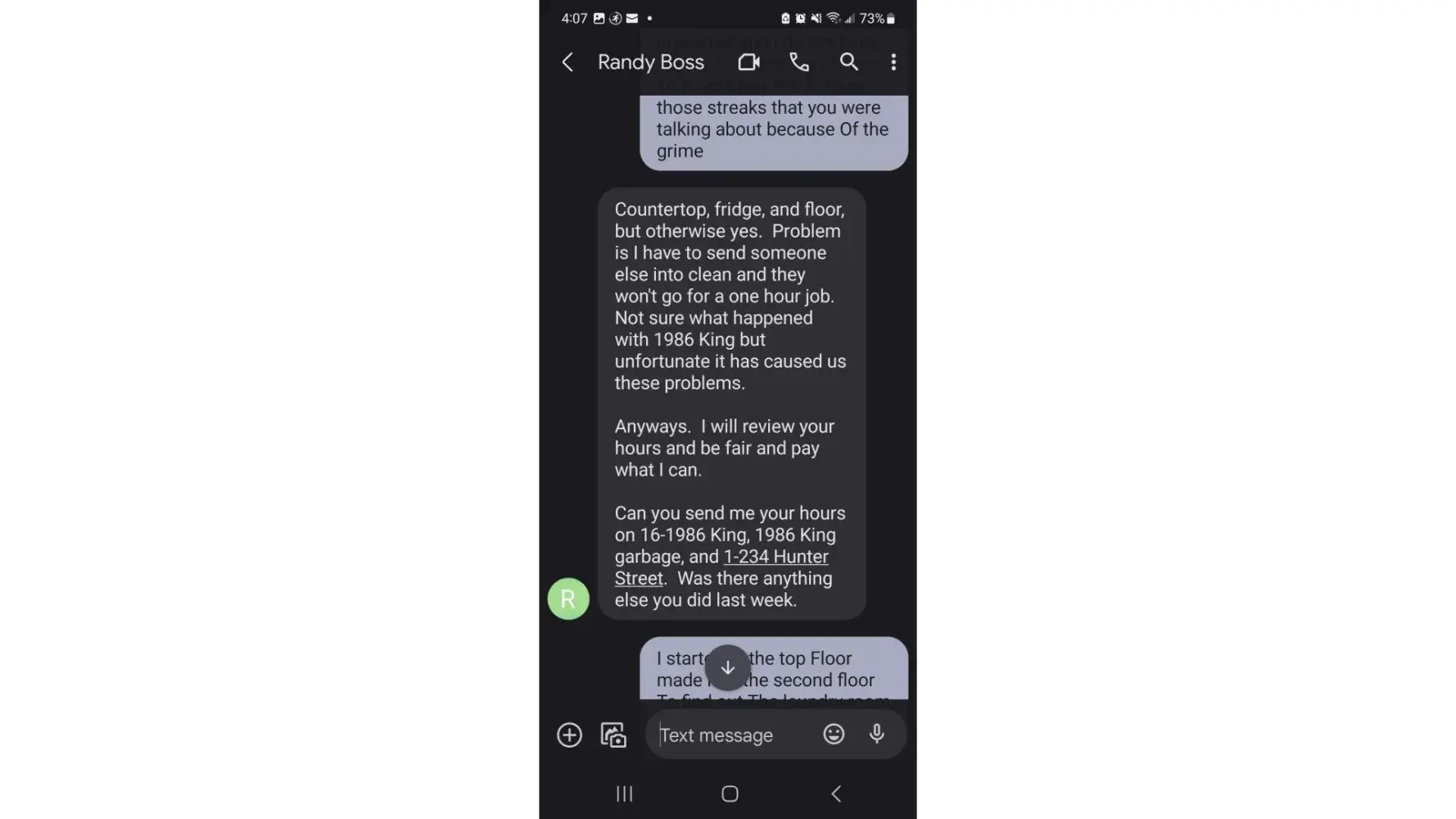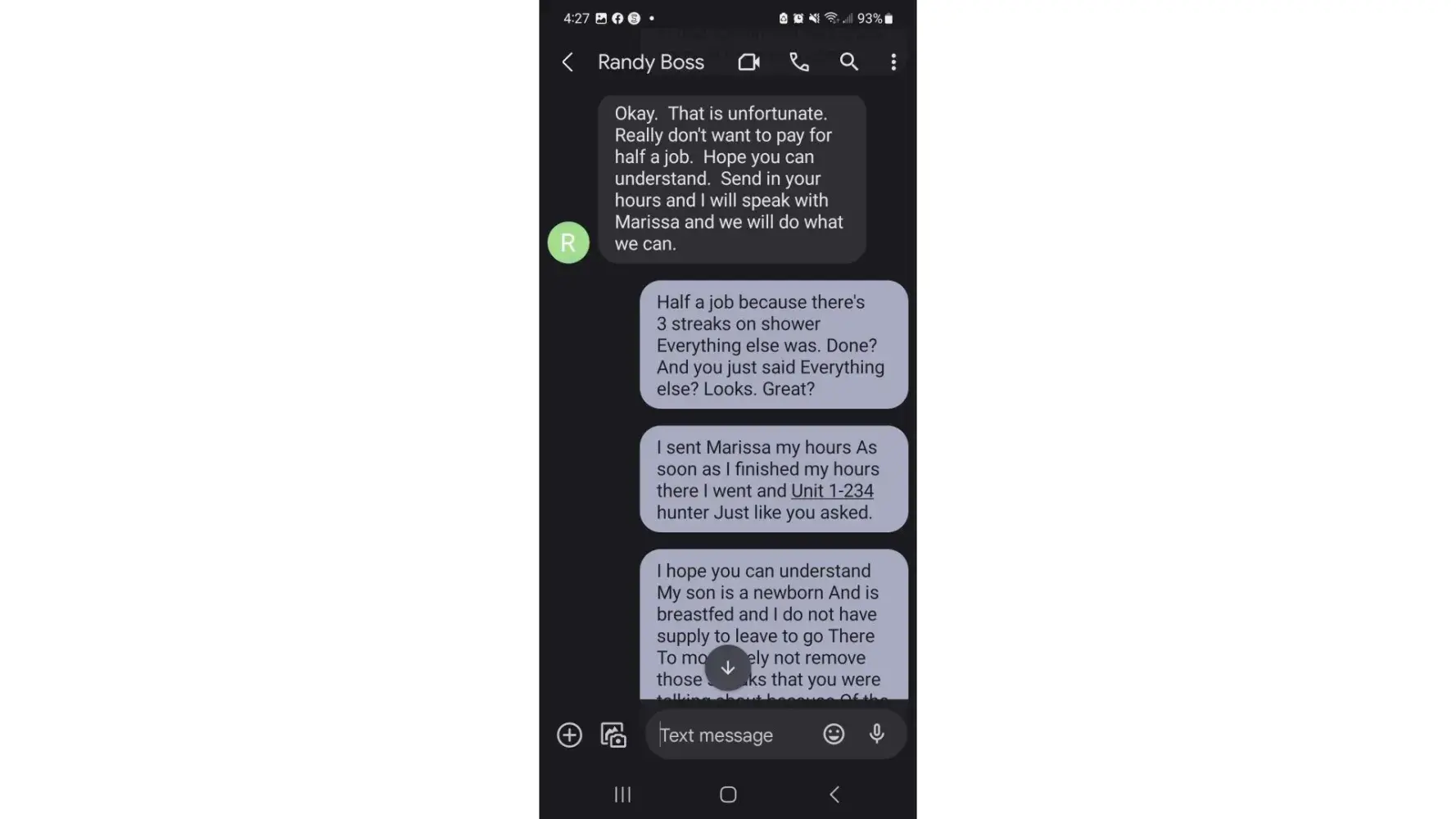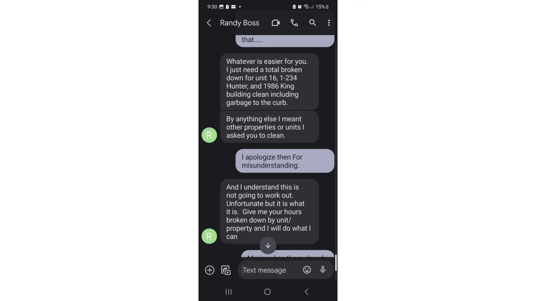 Worked huge amount of hours for randy dalton on may 10th and continues to may 11th I cleaned a ltr he wanted me out of ltr unit by four but ALSO hired me to do the comon areas I arrived at the ltr unit at 10:56 am and left at 5:01 pm he had also hired me to manage the WHOLE buildings garbage bring it all to the curb wanted me to sweep all the laundry rooms and the hallways and stair wells so told to be out by 4 and I did the garbage that day I couldent finish all the work in the ltr and was told to go back the following day so may 10th and may 11th I cleaned a whole days I arrived there AGAIN at 10:12 am to finish up the ltr and finish cleaning all the comon areas come to find out RANDY didint know where garbage bags were said they were in a boiler room so he sent another girls number I told her they weren't and she wanted me to use my own money to replace the garbage bags for whole buliding until she got ahold of another person I said no she then got back to me and said the same answer randy said "in the boiler room" so I told randy I don't feel comfortable doing this if I cant get a strait answer from no one so he was FINE with it and for me to go and do the str which was only another 3 hours and 50 somthing minutes BUT to only CLEAN str units MOVING FORWARD so I did that ON TOP of thoes