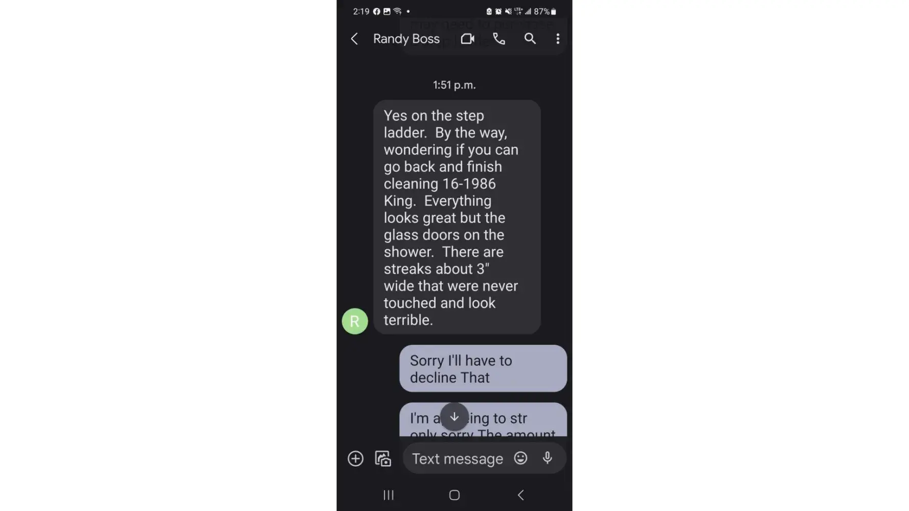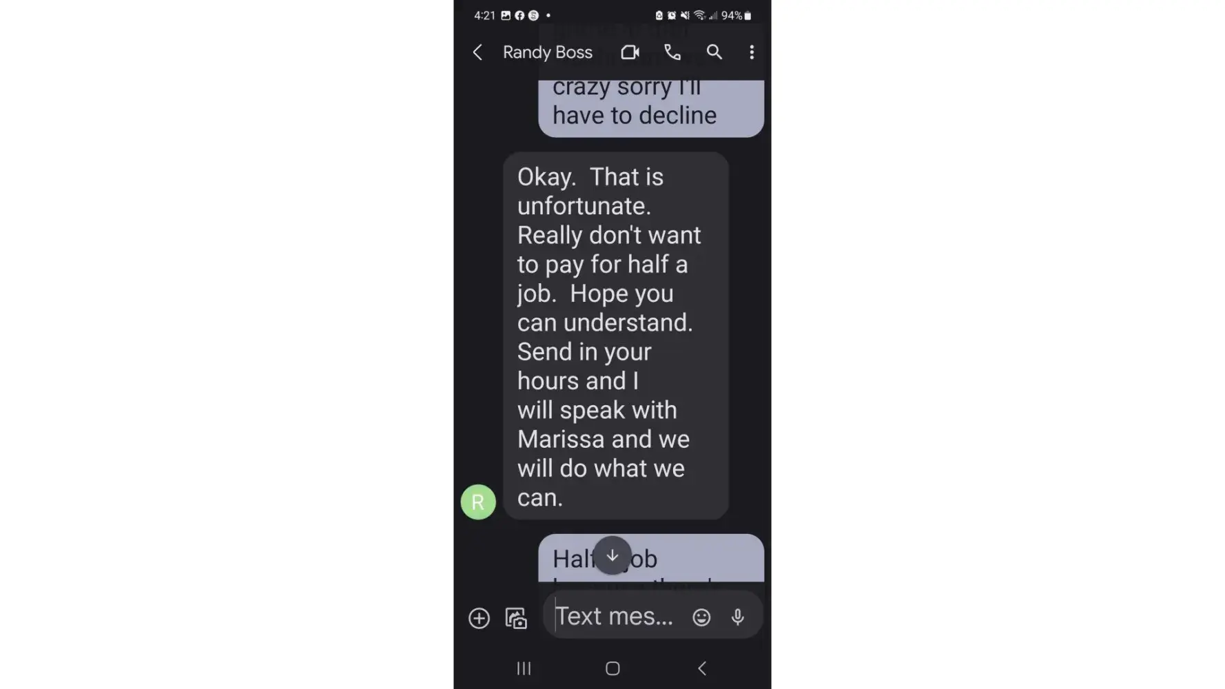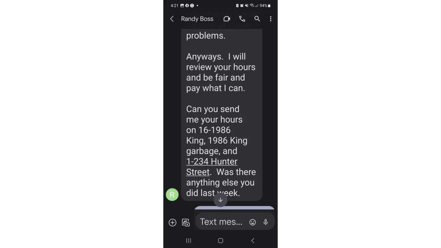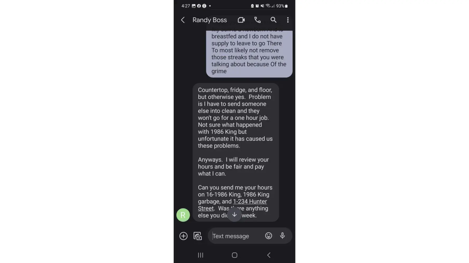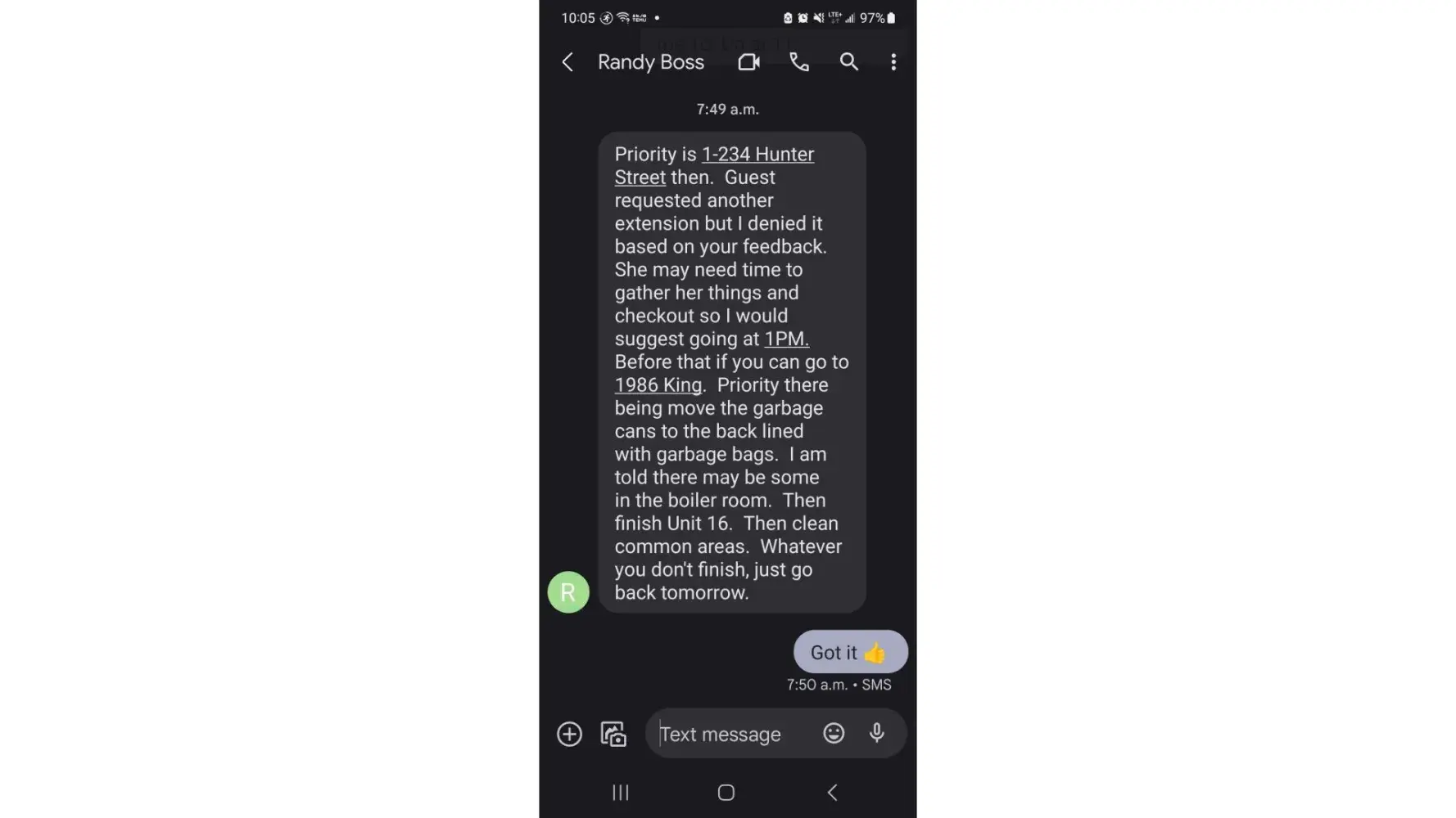 Worked huge amount of hours for randy dalton on may 10th and continues to may 11th I cleaned a ltr he wanted me out of ltr unit by four but ALSO hired me to do the comon areas I arrived at the ltr unit at 10:56 am and left at 5:01 pm he had also hired me to manage the WHOLE buildings garbage bring it all to the curb wanted me to sweep all the laundry rooms and the hallways and stair wells so told to be out by 4 and I did the garbage that day I couldent finish all the work in the ltr and was told to go back the following day so may 10th and may 11th I cleaned a whole days I arrived there AGAIN at 10:12 am to finish up the ltr and finish cleaning all the comon areas come to find out RANDY didint know where garbage bags were said they were in a boiler room so he sent another girls number I told her they weren't and she wanted me to use my own money to replace the garbage bags for whole buliding until she got ahold of another person I said no she then got back to me and said the same answer randy said "in the boiler room" so I told randy I don't feel comfortable doing this if I cant get a strait answer from no one so he was FINE with it and for me to go and do the str which was only another 3 hours and 50 somthing minutes BUT to only CLEAN str units MOVING FORWARD so I did that ON TOP of thoes