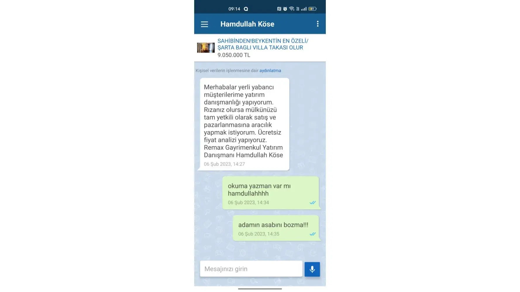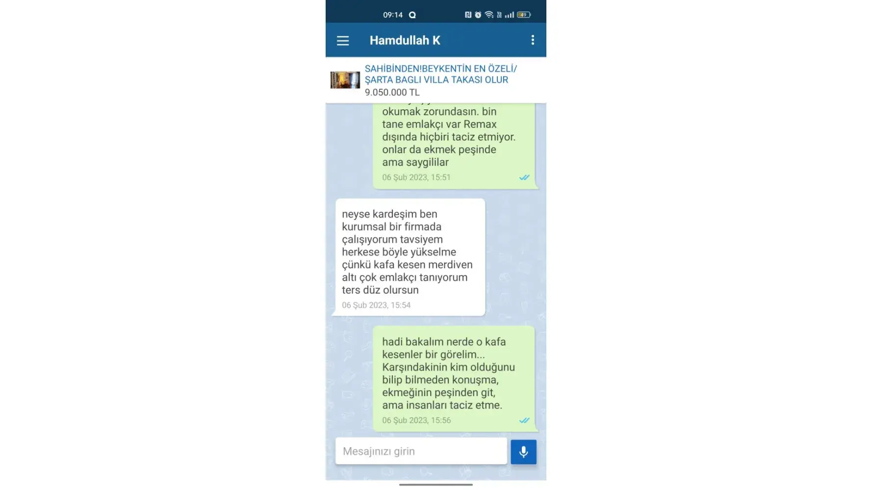 Firstly the [censored]ing stupid sending message from Remax account and i blocked while saying dont you read... Then he sents message from another account and he threatens me bu killing me!