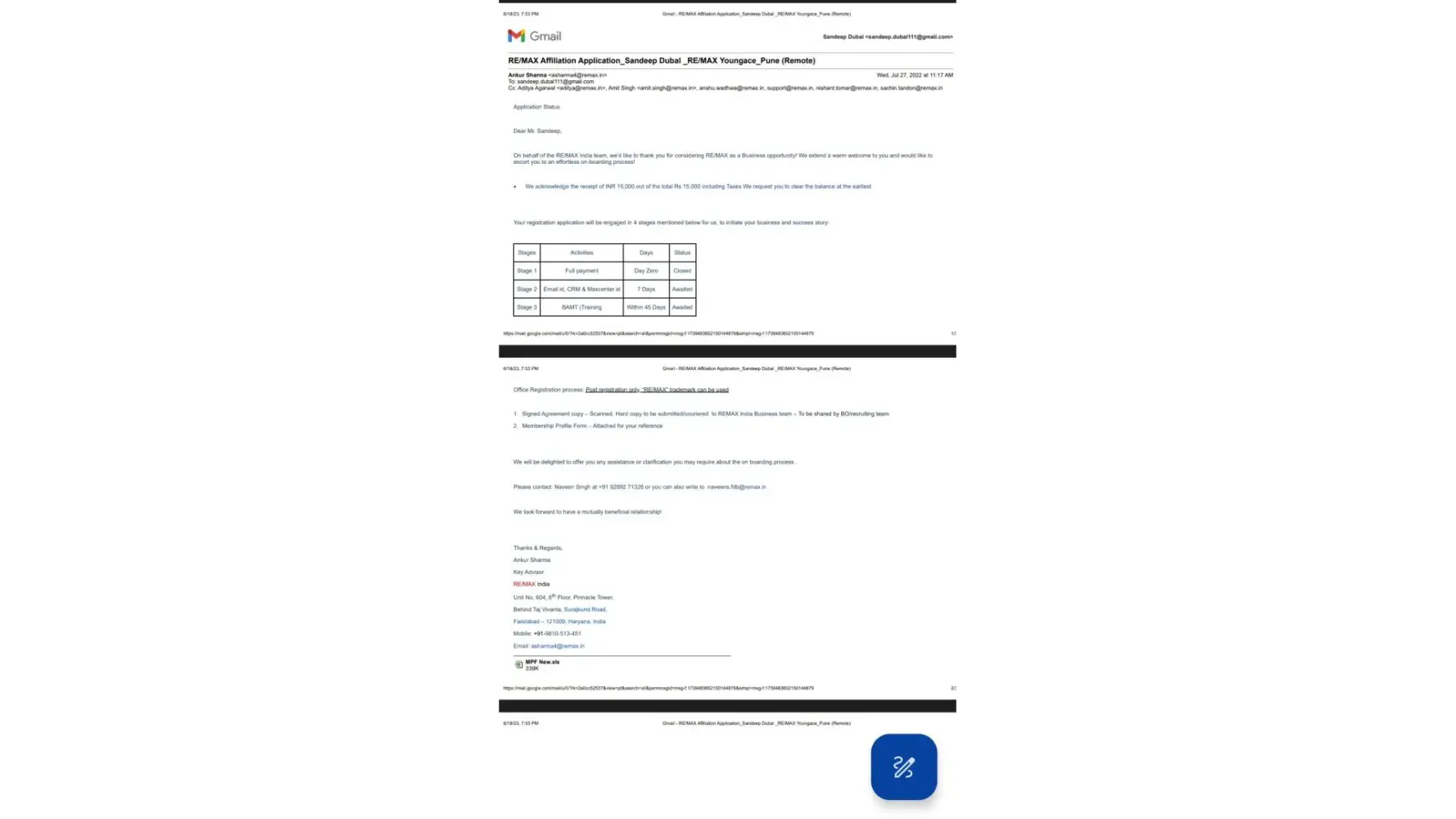 I am Sandeep Dubal , from India , I have paid your Subscription Fees on July 2022 , but till now neither agreement done by your Indian Counter Part nor they are cooperating with me. Already Re/Max Name is spoiled in India by these people due to unethical practices , you can go through all the reviews on social media , I was also not ready to join Re/Max after reading these negative reviews by earlier Business Associates , Franchises & Customers in India, but since Re/Max name is reputed name worldwide i took a chance to join, but my experience in las one year is not different than whatever i read in Social media Reviews i read. Request you to help in getting my annual subscription amount as soon as possible else , i will have to raise the issue on social platforms & Consumer court in India. Please look in to the matter on priority.