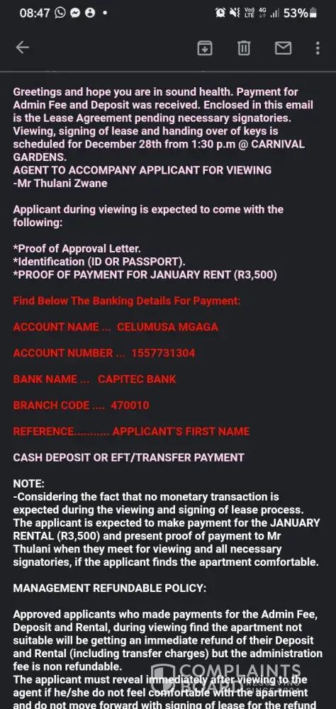 I will be reporting her to the letting agency of South Africa and taking this matter further... ( PPRA & Tribunal )