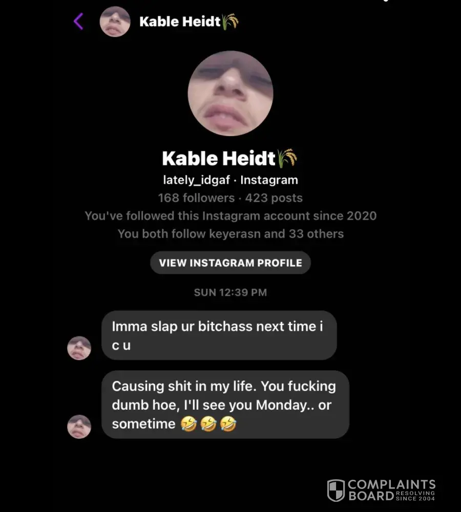 One of your employees Kable Heidt beats women and is extremely violent towards women and proceeded to charge at a 15 year old girl with his hand raised at her. I don't think this is someone you should have working at your store as he is extremely dangerous. He also says very vulgar things about the other females he works with such as a girl named in customer service named katelynn and another girl named Katherine.