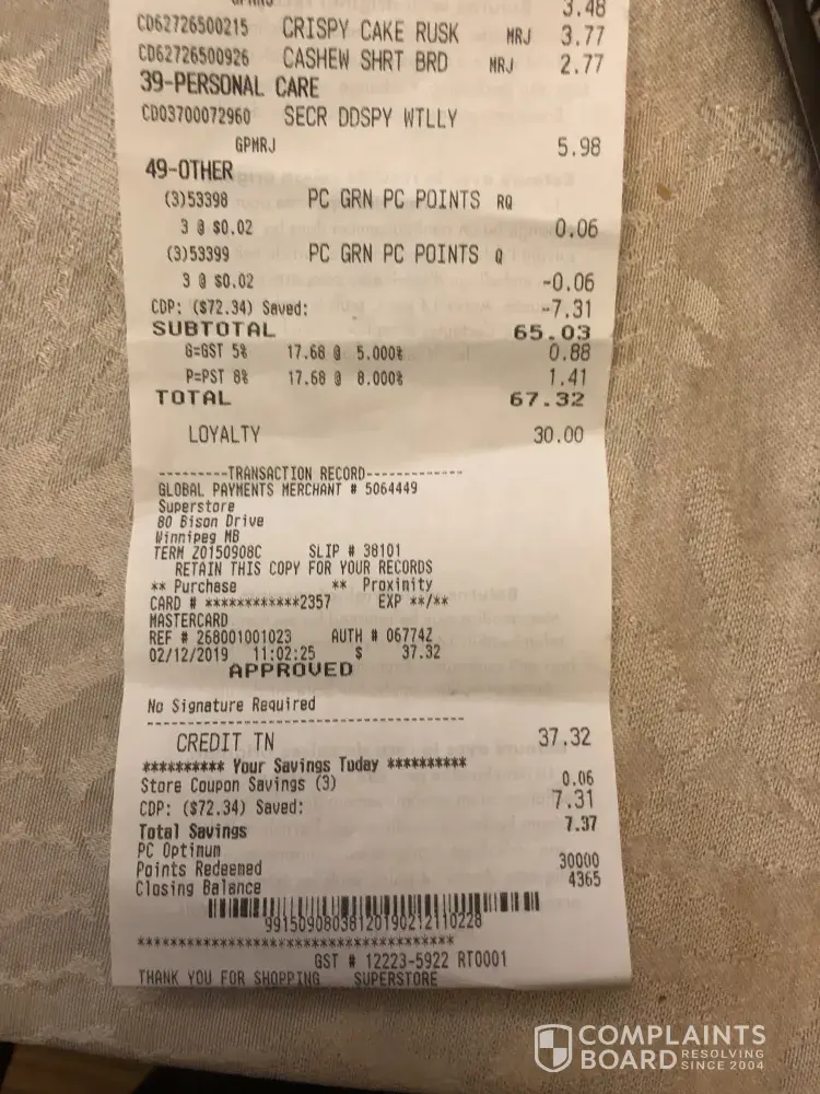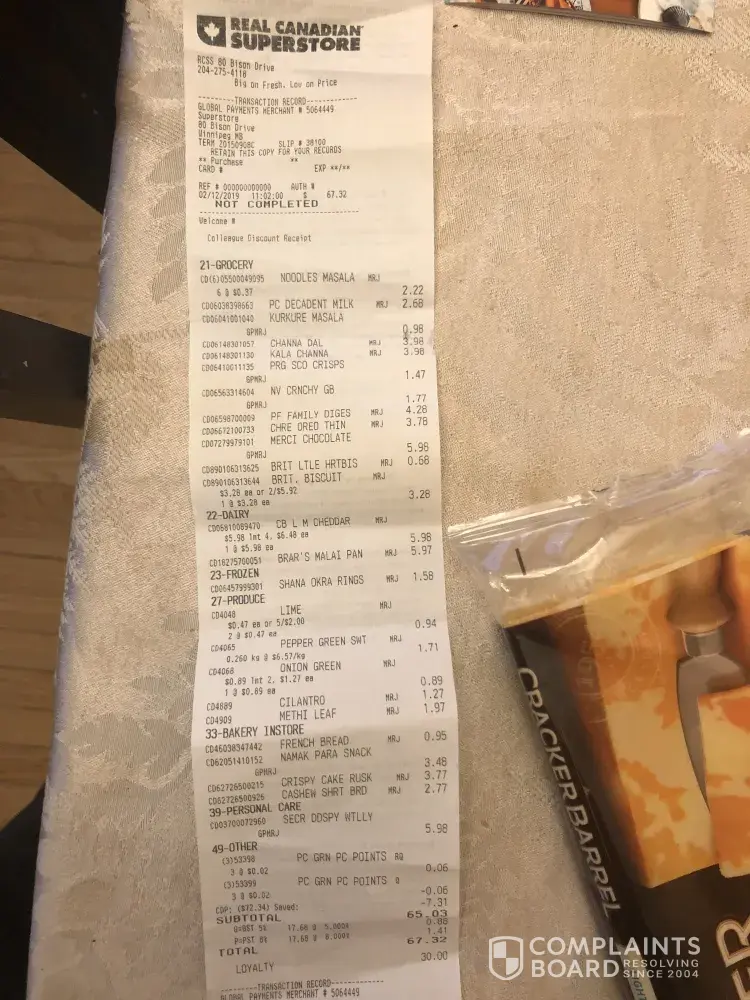 this basically a copy of a complaint I sent to Airdrie superstore who did not respond