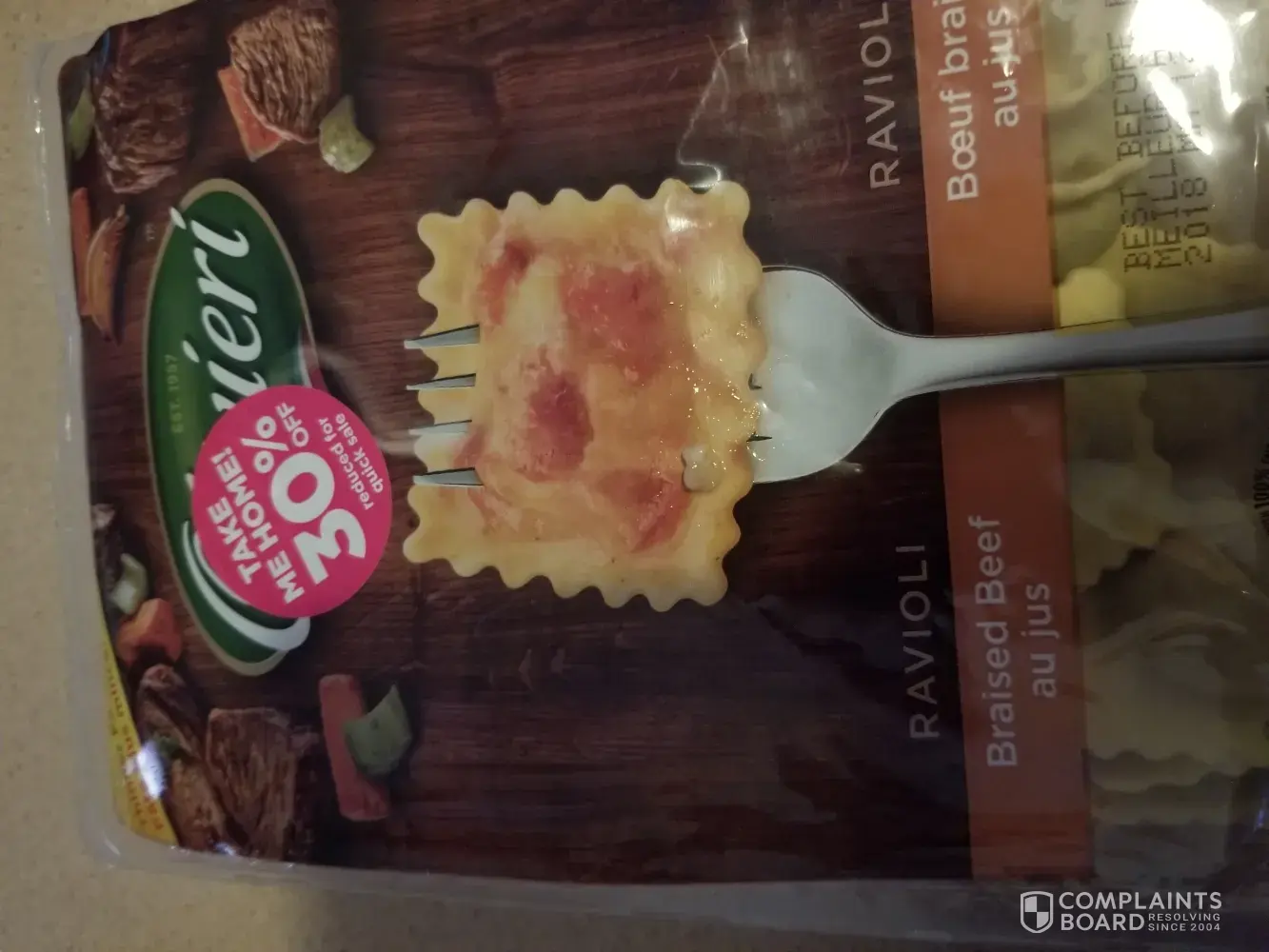 First off as you can see by the pictures, I bought fresh ravioli that they gave me with the same expiry date as the day I picked up my order with a 30% off sticker. As you can see, I opened it and there was mold all over the ravioli! I had to go to work and did not have the time to return it. I think it's terrible they chose to unload that on me when I'm expecting to receive FRESH items when using click and collect. I was not aware I had to make special instructions for the shoppers not to pick moldy expired products for me.