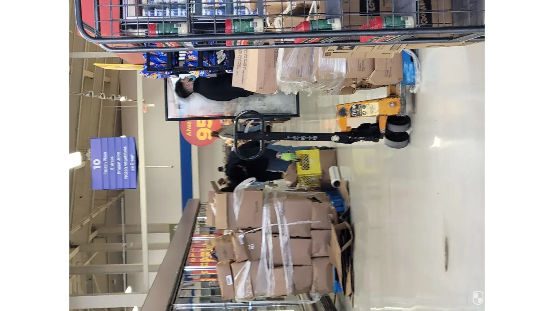 I was strolling my cart around the frozen ice cream section when I had to stop because Adriano had boxes blocking the aisle. I waited there as there was a small area to pass but he was standing in the way. He moved back 1 foot and told me to pass, but I mentioned to him there wasn't enough space as I would run over his foot with my shopping cart. He insisted that I move and commented "What's the matter, don't you know how to turn a cart?" I said that there wasn't enough room, and I would report him because he was rude. He defiantly said to go ahead so I did.