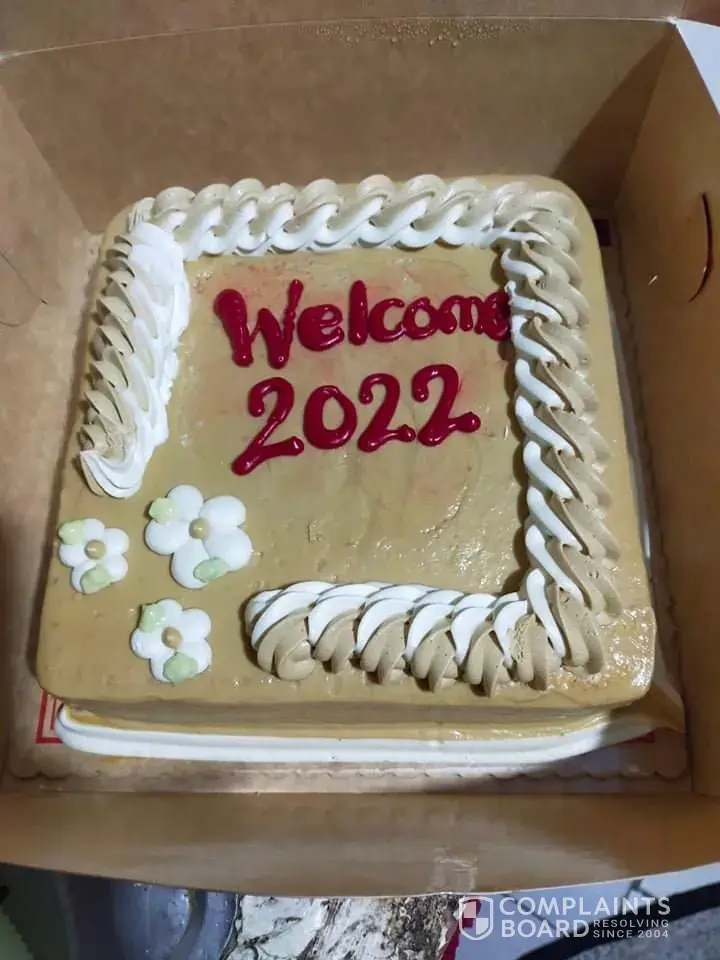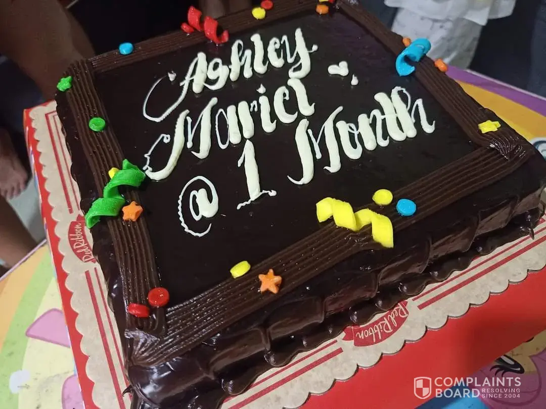 Red Ribbon Creamy Caramel Cake / im complaining about the lettering in the cake that i ordered.
