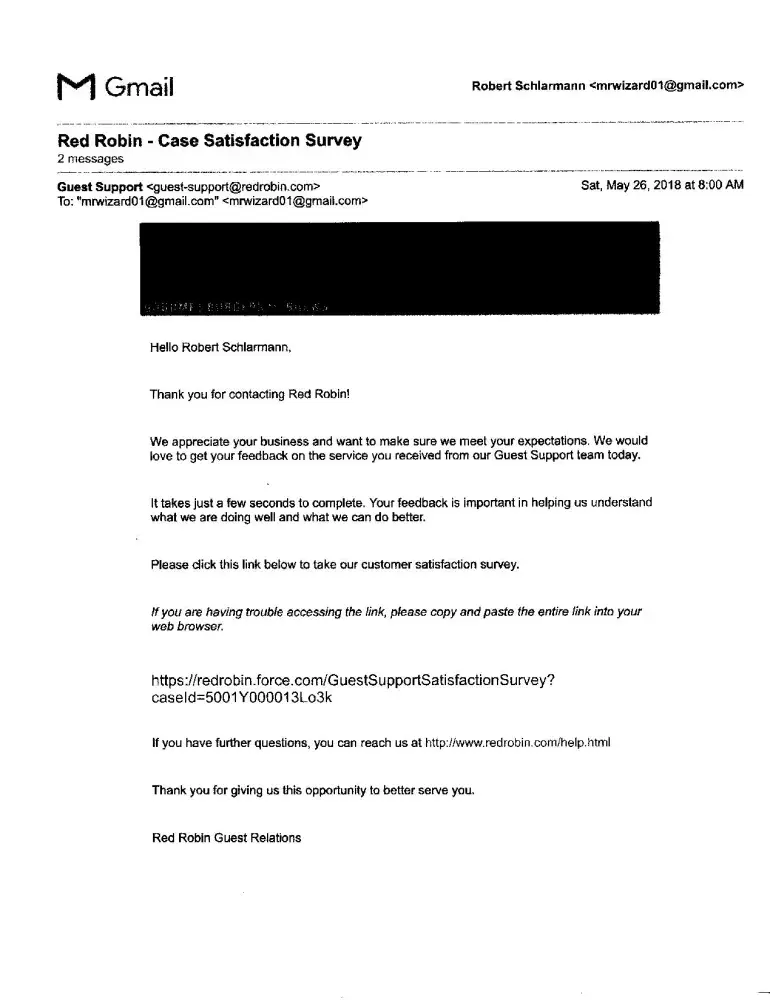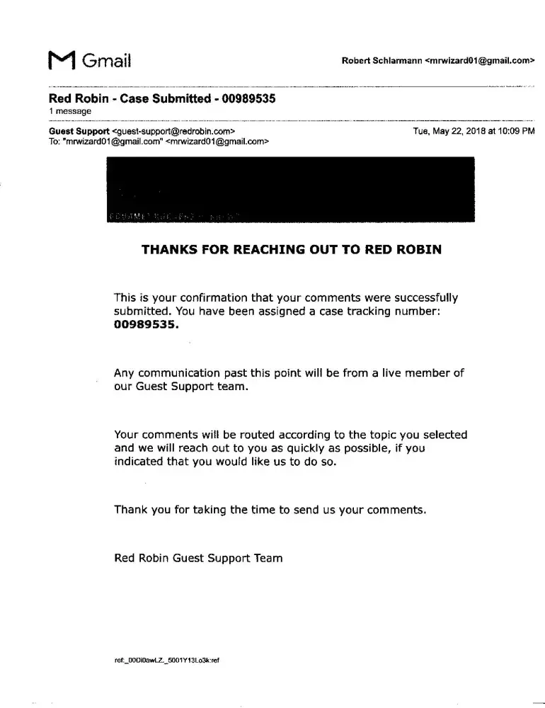 Red Robin Bad dining experience request for reimbursement