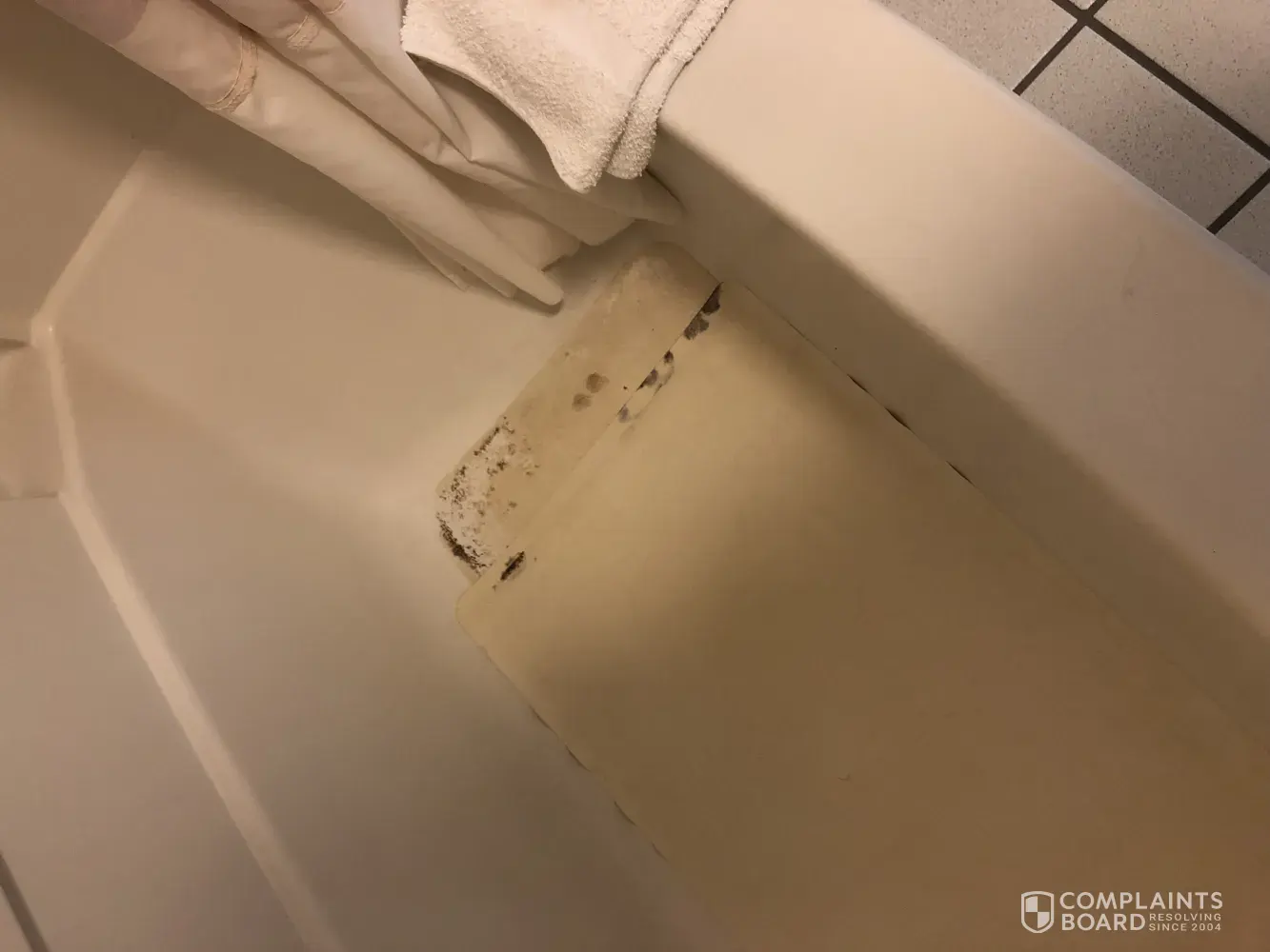 The shower. Mold all around the grout, and the drain bars description. So yes, I took pictures. But I didn't take a shower. I'll be driving to Arizona tomorrow in the same clothes I arrived in.