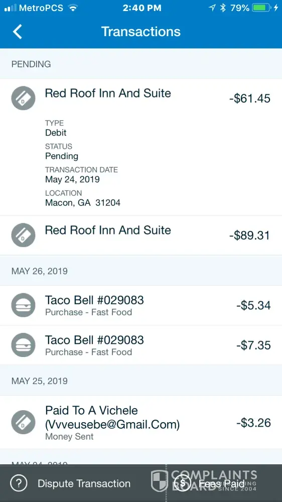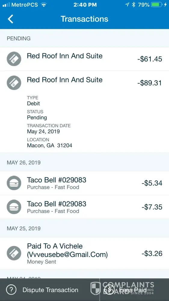 On May 24, 2019, I attempted to pay for a night reservation at the Red Roof Inn, Macon location at about 0830 hrs. I gave the agent my debit card, and according to her the payment was not successful. She proceeded to advice me to swipe the card, but to no avail. According to my bank, these amounts were paid, and being held pending Red Roof Inn's merchant...