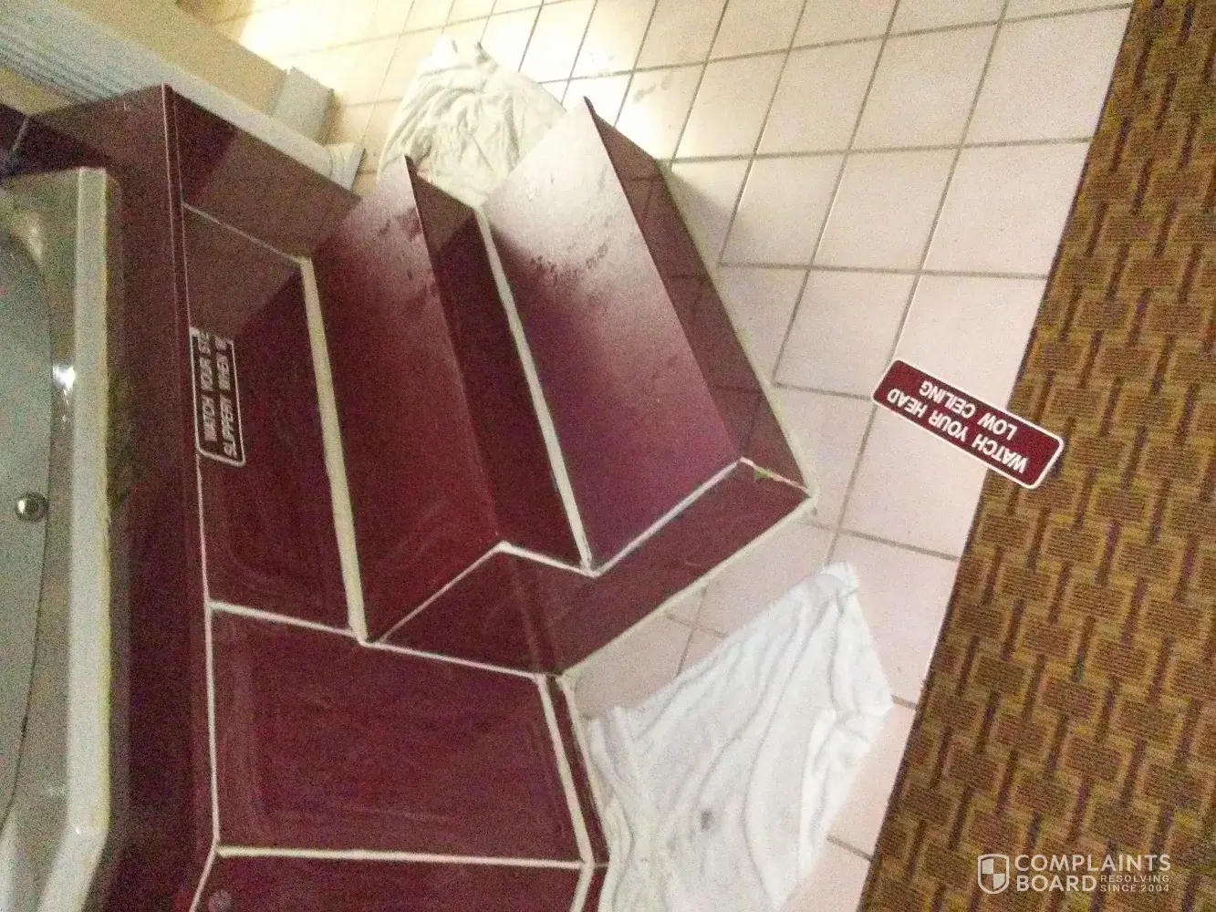 I was getting out of the Jacuzzi at the front face where the sign is suppose to be sturdy and not slip but it had came off the tub and I stepped on it and slipped onto the floor and injured my right knee. I had to call the front desk to get help up and she came but she didn't help me get my clothes to the bed where she helped me move to and she didn't ask if I needed anything