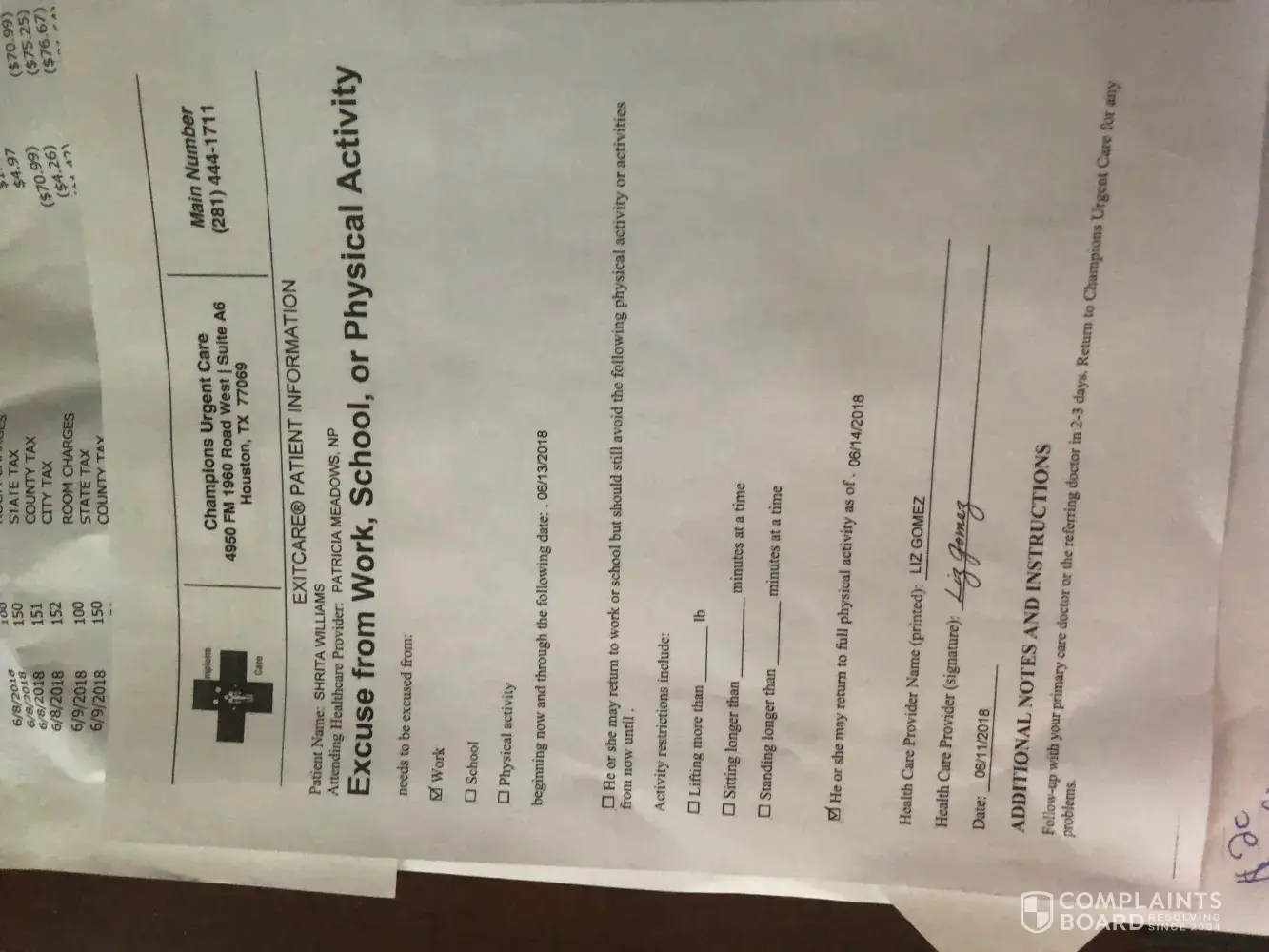 What I would like is My Money back for the Entire Weekend($220.04)