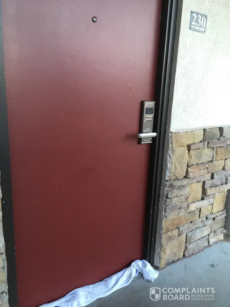 My husband went down to the Front Desk to complain about the incident and was told that no one kicked our room door and that they had cameras in the hallway and didn't see anyone kick the door. How they could see what was going on in the hallways and working the Front Desk at the same time is a mystery to me.
