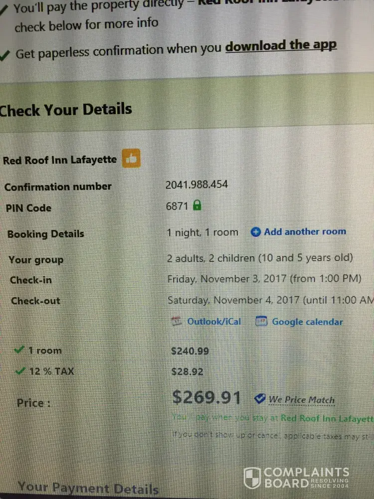 Red Roof Inn - My daughter had reserved this room for 09/17/2917.
