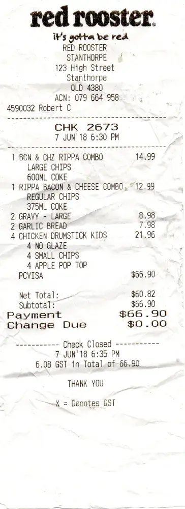 I bought a half chicken n chips at Gracemere on the 23rd April.