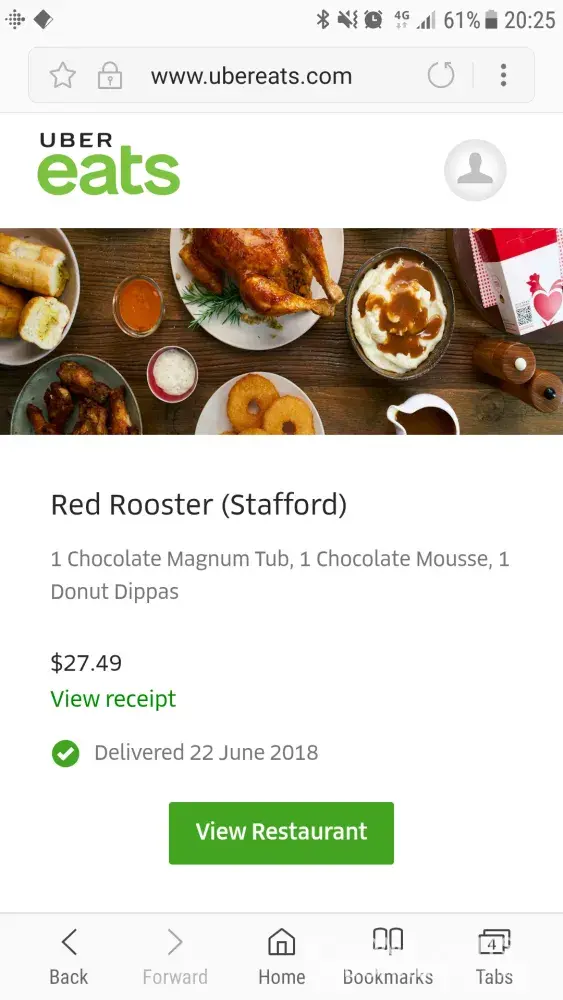 Hi, I've just received my order via Uber Eats from Red Rooster Stafford, Brisbane Queensland and it was incorrect. I immediately called the restaurant to find out what was going on, only to be told that they were sorry (which I do appreciate) but first of all blamed the driver until I said that my name was on the bag. Then I was advised that one of the items I had order was no longer availble and that they needed to take it off the website (?) Finally I was told that they had tried to call myself and the driver (I had no call) My order was: