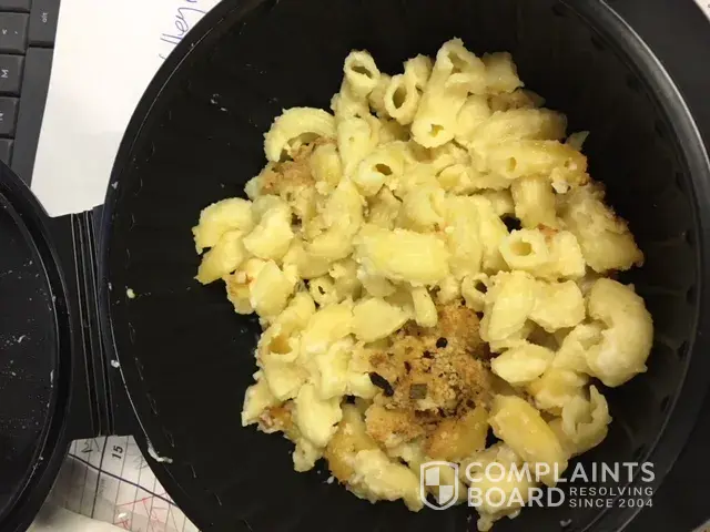 What I received was approximately 5 level tablespoons of mac and cheese, sadly loitering in the base of the bowl !