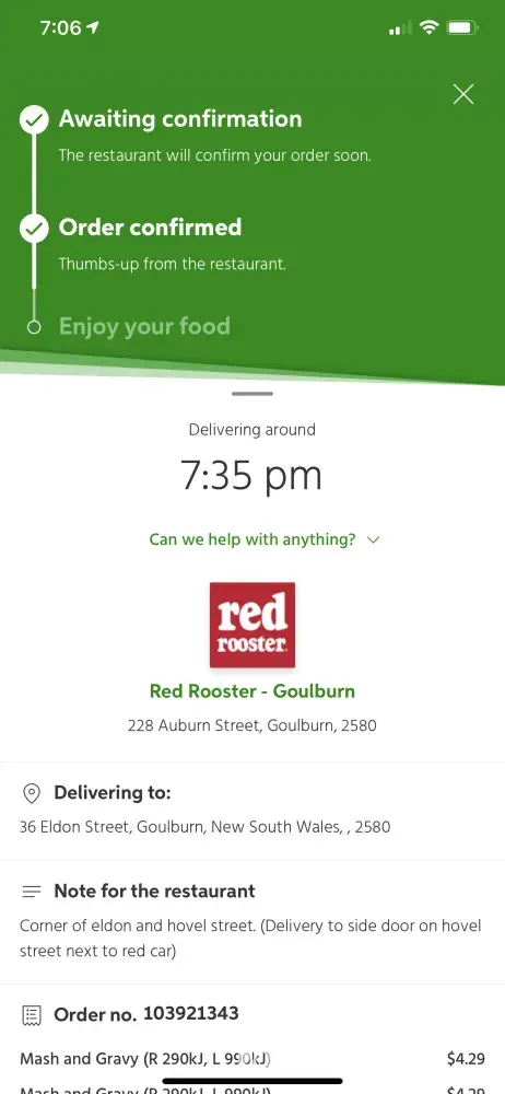 If your order's late or not quite right get some more help here. Alternatively please give Red Rooster - Goulburn a buzz on [protected] - they'll be happy to help.