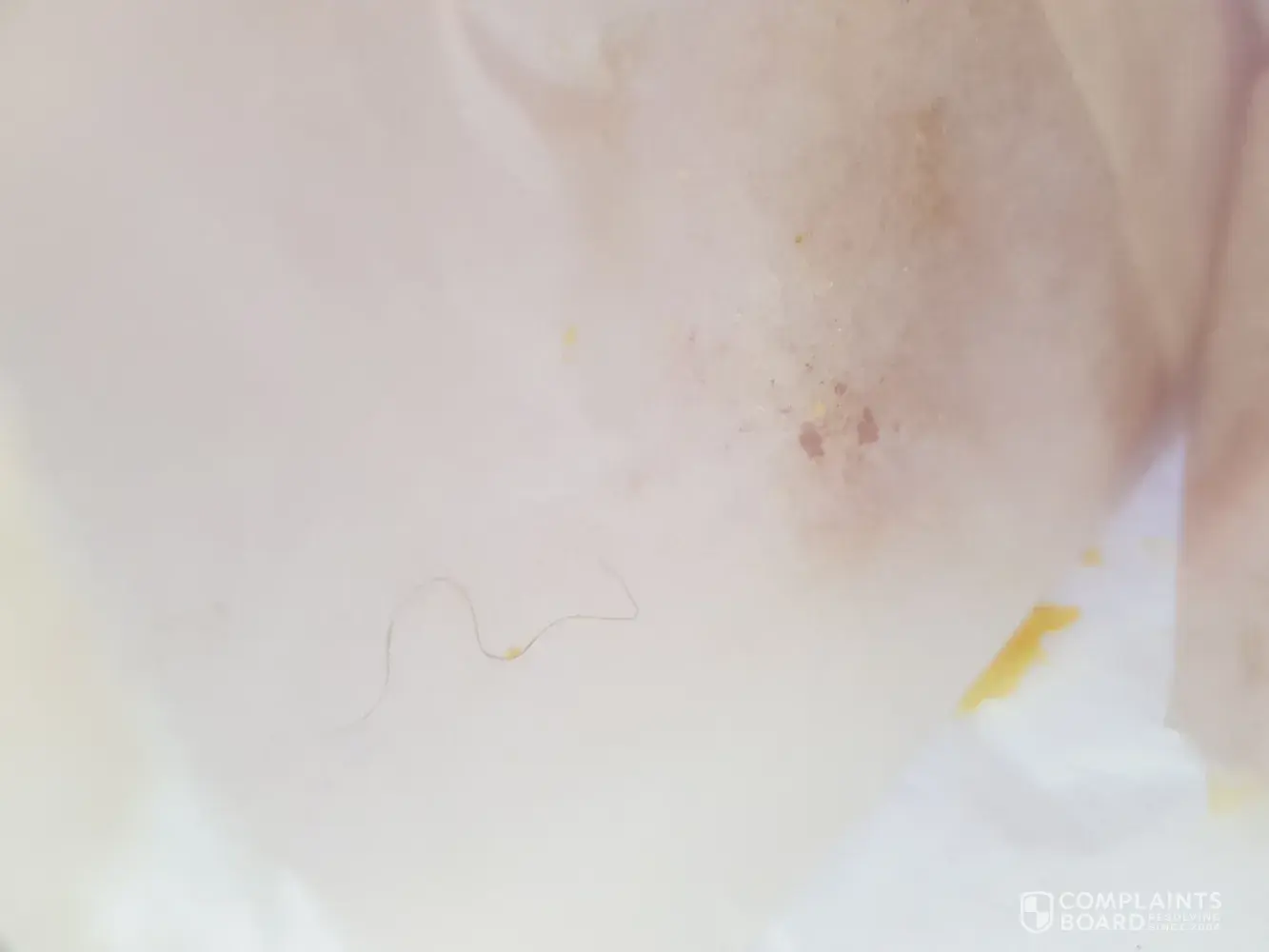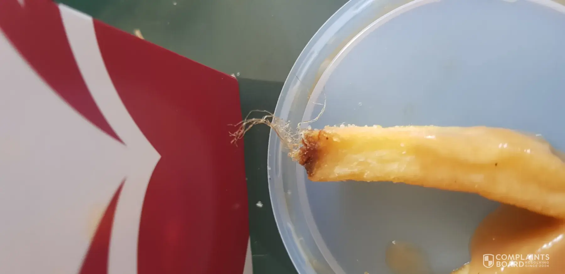 Hi I ordered a large chips and gravey and half way through I found a chip with a heap of hairs fried to it. It look rather gross and obviously I have thrown the rest away. The look of this is quit sickening. I have a picture attached. Would like it if someone could look into this and maybe see if I can be compensated. My email is [protected]@gmail.com or mobile [protected]