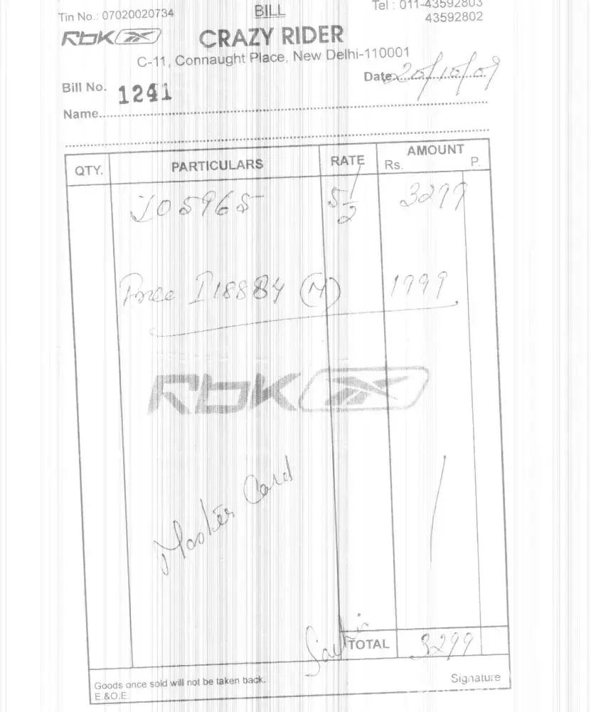 1. I have purchased two nos of Reebok make Track Paints from H.R. Enterprises, Shop No.1A, A.K.Industl.Estate, S.V. Road, Goregaon (W), Mumbai- 62, Maharashtra (India).