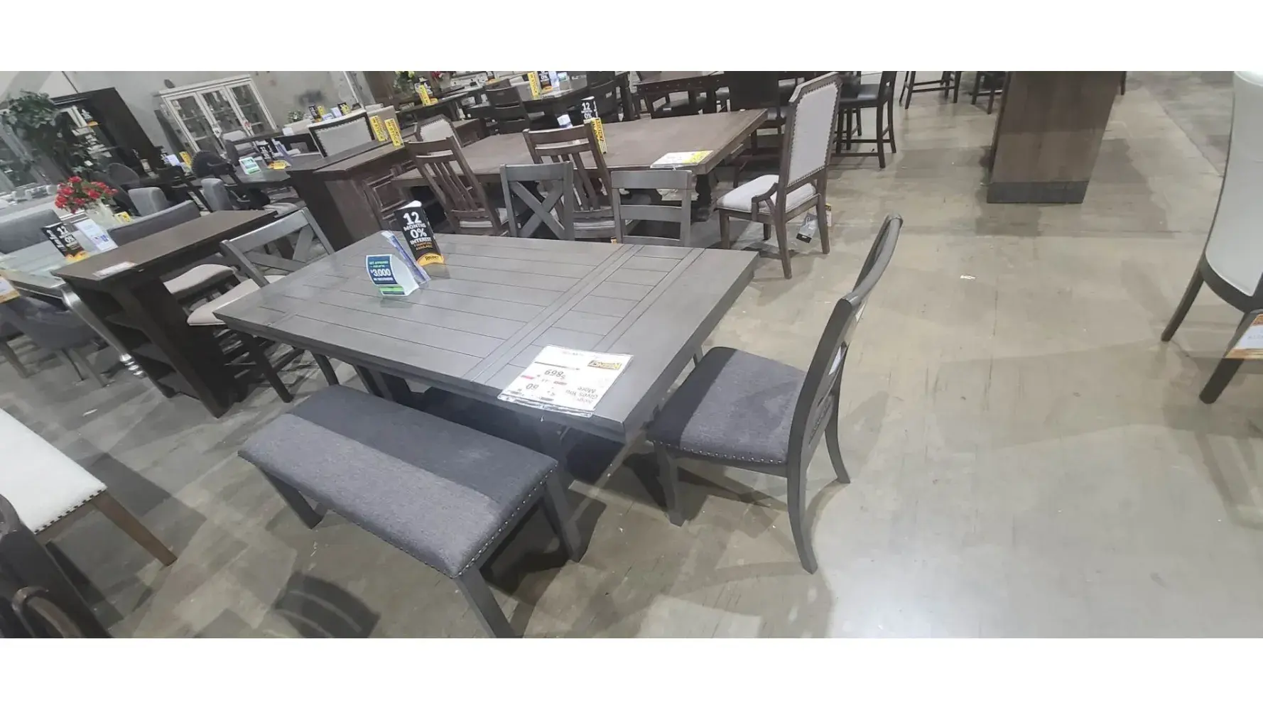 Yesterday, Saturday 11/26/22, I walked into the Regency Brandywine location at approximately 4pm. I was greeted by a very polite young lady with a pixie cut by the name of "Angel". She guided me to the dining room tables located on the immediate left of the warehouse. Where I explored the 'world's largest furniture outlet's dining section and stumbled across a grey table, with 4 chairs and a bench listed with a purchase now sticker of $869.99. The price seemed great so I facetimed my sisters and God Mother (who used to live in Waldorf) to make sure the aesthetic of the table aligned with what I felt was a great "Black Friday Weekend" price.
