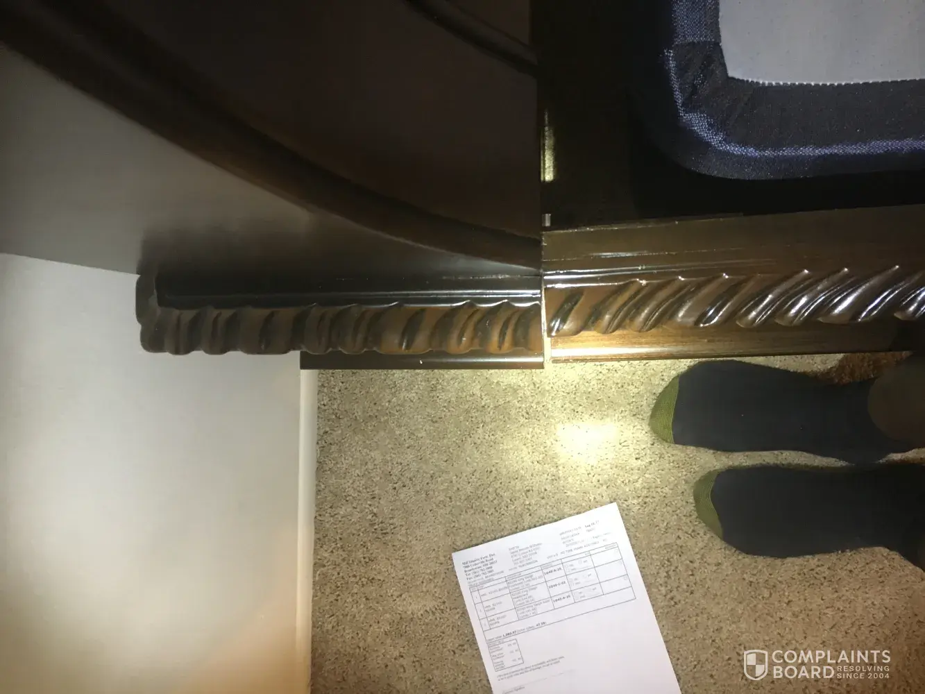 Same thing happened to me around the same dates...except when they delivered they didn't want to put it together...the delivery guys were scary and intimidating after a couple a weeks (2) the whole bedframe collapsed the wood was totally rotten I took pieces of the frame to the store and the manager agreed this shouldn't of happened he pulled my account gave me the re # and a number to contact regency furniture. I spoke with a Kandace Chapman I explained my issue, she asked me to send pictures and I did. Which you could clearly see all the damages from the dry rot. She told me they would review and call me at the end of the week...I haven't received a call or follow up...so I called for over a month before I reached Kandace again this time she was very rude and unprofessional she told me she wasn't replacing anything and hung up on me. So I call synchrony bank to let them know what I was going through they stopped all payments until the issue was handled I sent them the same photos. A Month later I came home found a big box with two side rails...I thought we were getting somewhere. She never sent the footboard which is essential to the siderails, the bedroom set I ordered have drawers that are on the bedframe, so without the footboard I can't attach siderails or put my drawers in. and I've been going through this since late September early October of 2022.