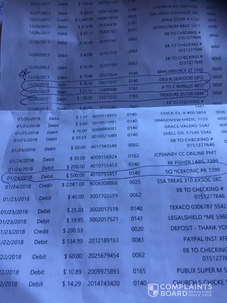After last Xmas, I complained about fraudulent charges on my account. The transactions occurred in GA on 12/24 while my family and I were in Birmingham preparing for the holidays. THERE IS NO WAY I CAN BE IN AL & GA AT THE SAME TIME! The claim was denied because they said the chip & pin were used. These are in no way 100% secure and I refuse to pay for fraudulent charges.
