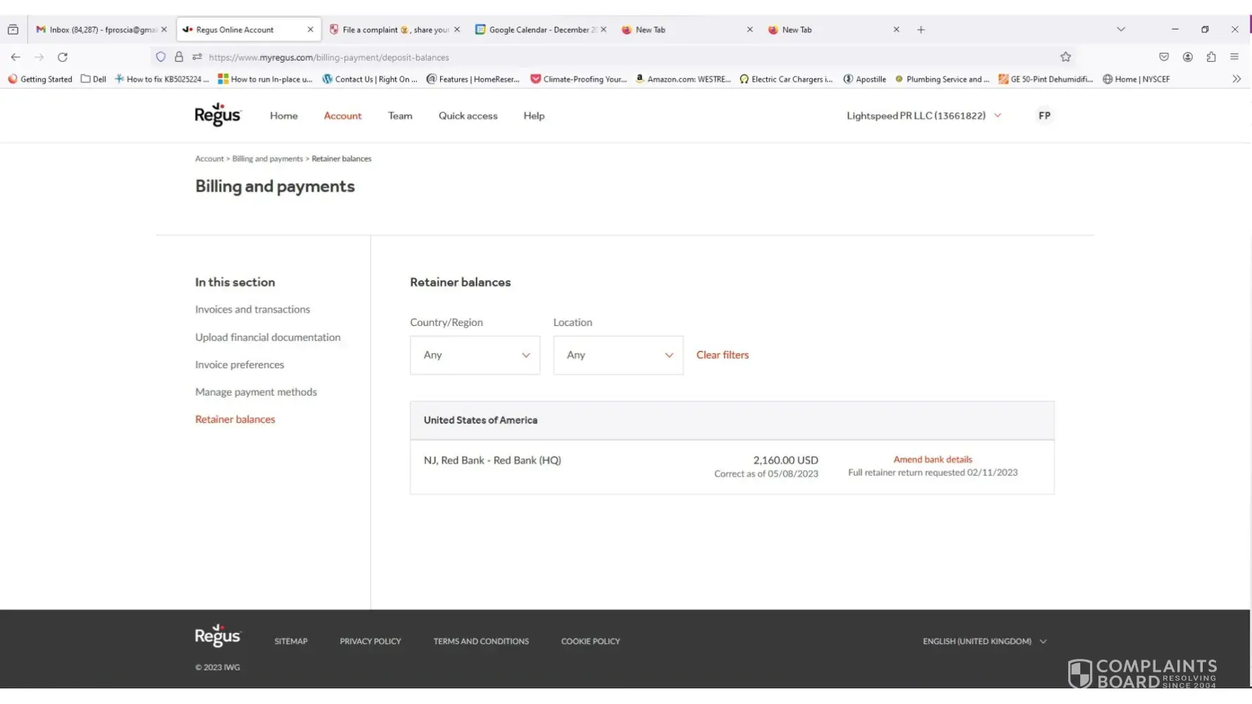 Regus has failed to return my $1300 retainer despite it being close to 90 days since my request. This is even after the charged me a $600 restoration fee….
