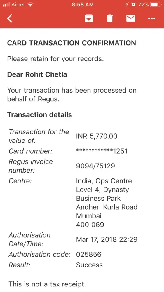 Im a Customer at Regus, I paid money for a cabin space at Regus and the payment was complete on march 6th but yesterday an additional amount was deducted from my credit card. You guys are not supposed to deduct any amount without my authorisation, so I request you to refund my amount back to me asap even one month time period is not complete how can you deduct the amount from my card?
