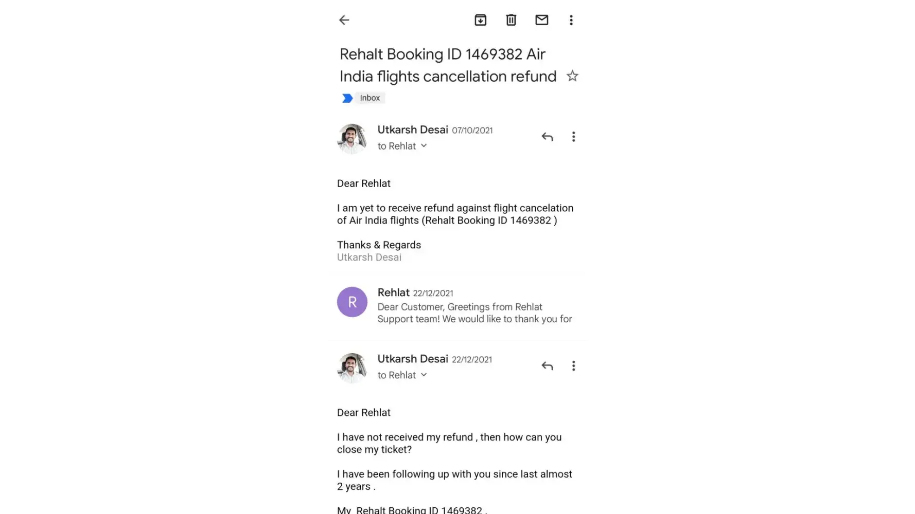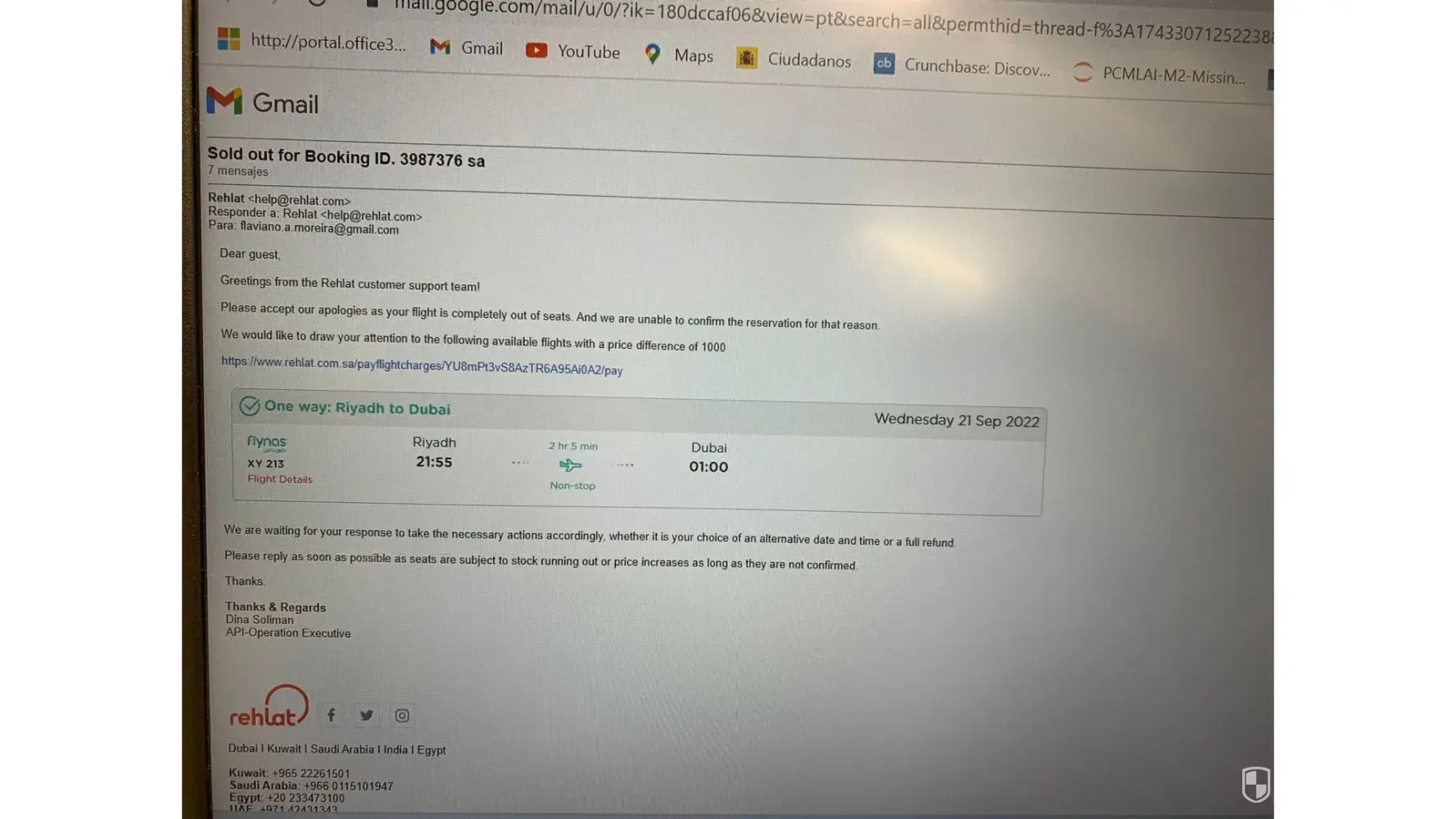 For all this time, I have been contacting Rehlat team to which I get a standard answer that “we are yet to receive an update from the airlineâ€. Rehlat team can refer all the communications with a subject line “Booking ID-SA1429927Eâ€