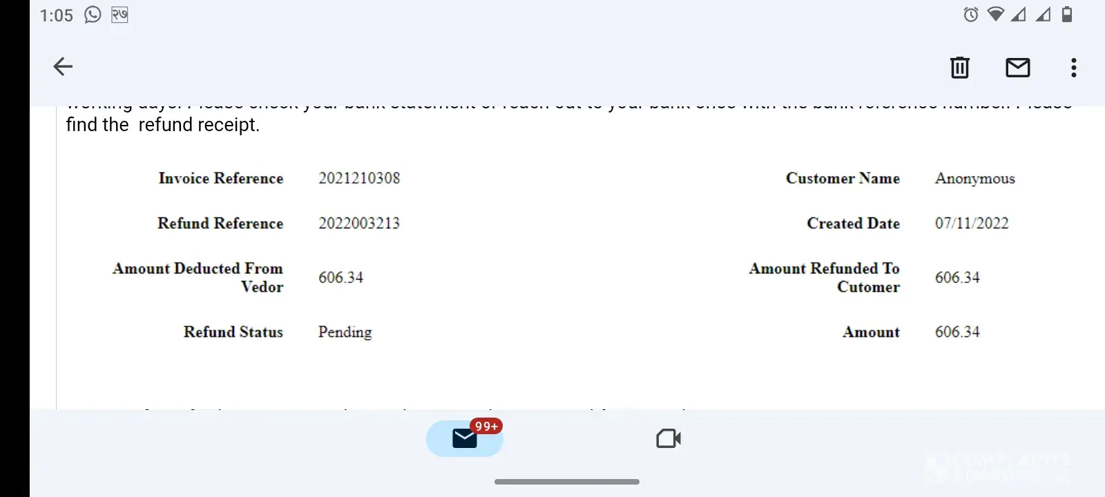 Regarding of My refund