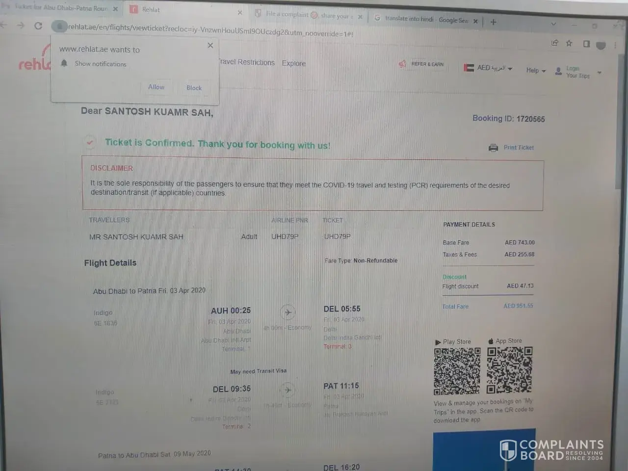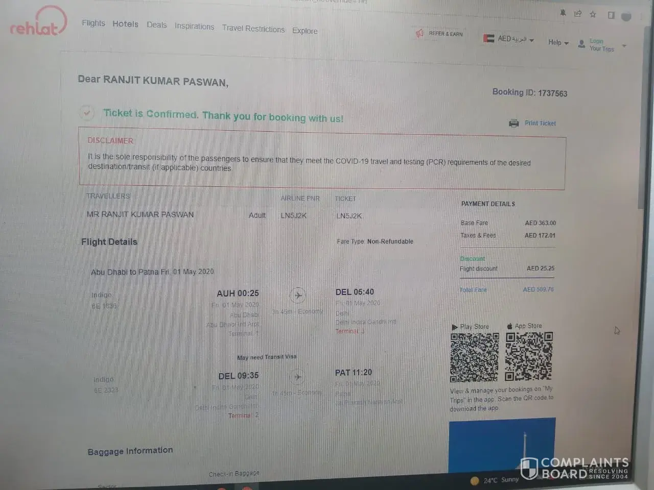 My booking id 1909335, when I was booking the flight ticket the total amount was showing 8283 AED only. However, I came to know through my credit card statement is that, 8625 AED deducted. In this regard, I have sent many email to Rehlat. Till now I dint get any response from Rehlat. In the meantime, I had a call with banker, they said few % of transaction charges are deducted due to the foreign money transfer which is really surprising to me. I have attached their response in my email as well. I need a proper response. It is a hard earned money which I dont like to loose this way. Please respond to me as soon as possible.