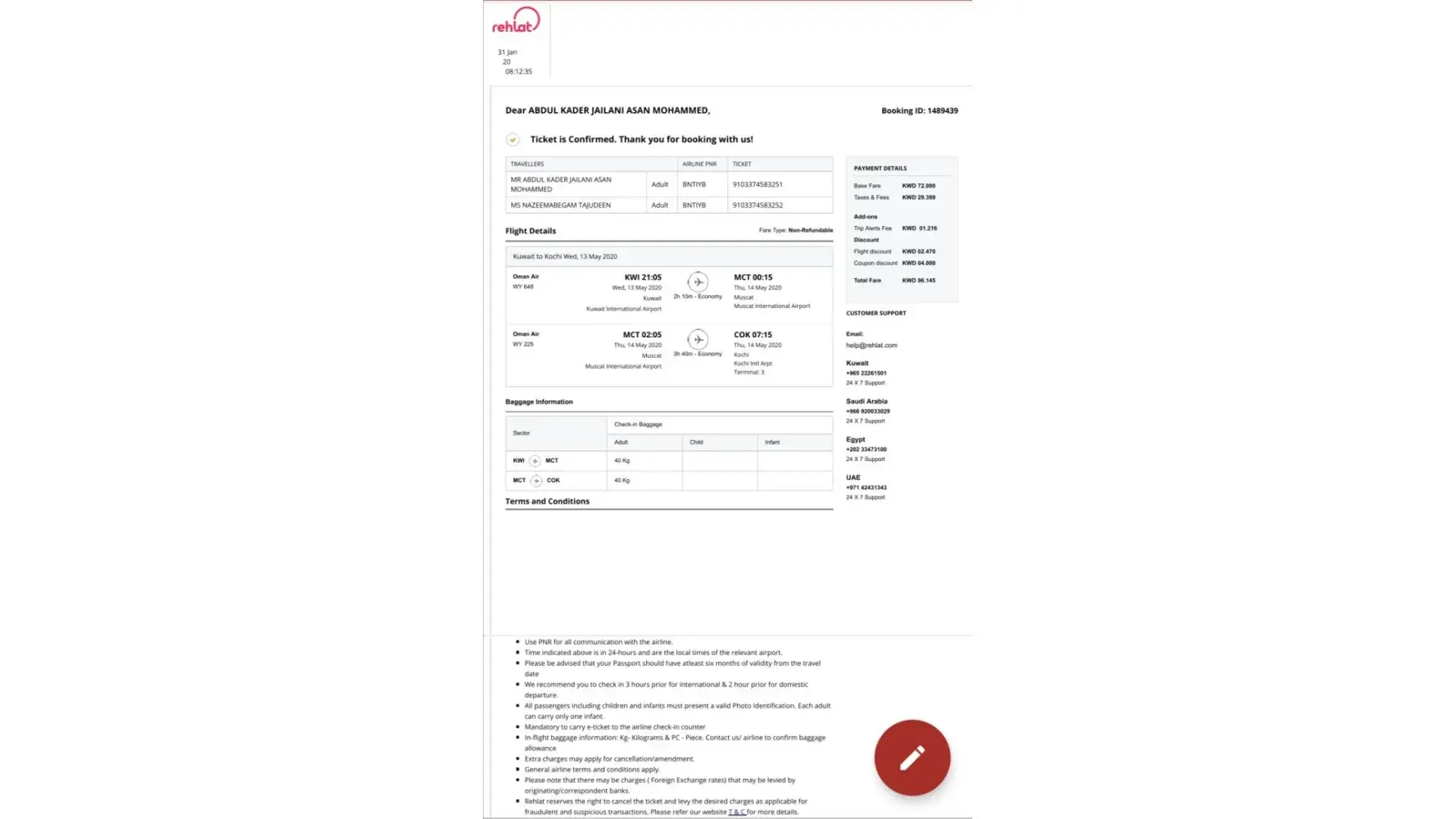 Since 2.5 years No refund received for my airtickets. Booking ID-1489439. Tickets Price 96 kuwaiti Dinars. Really fed up. Kindly do needful. Thank you