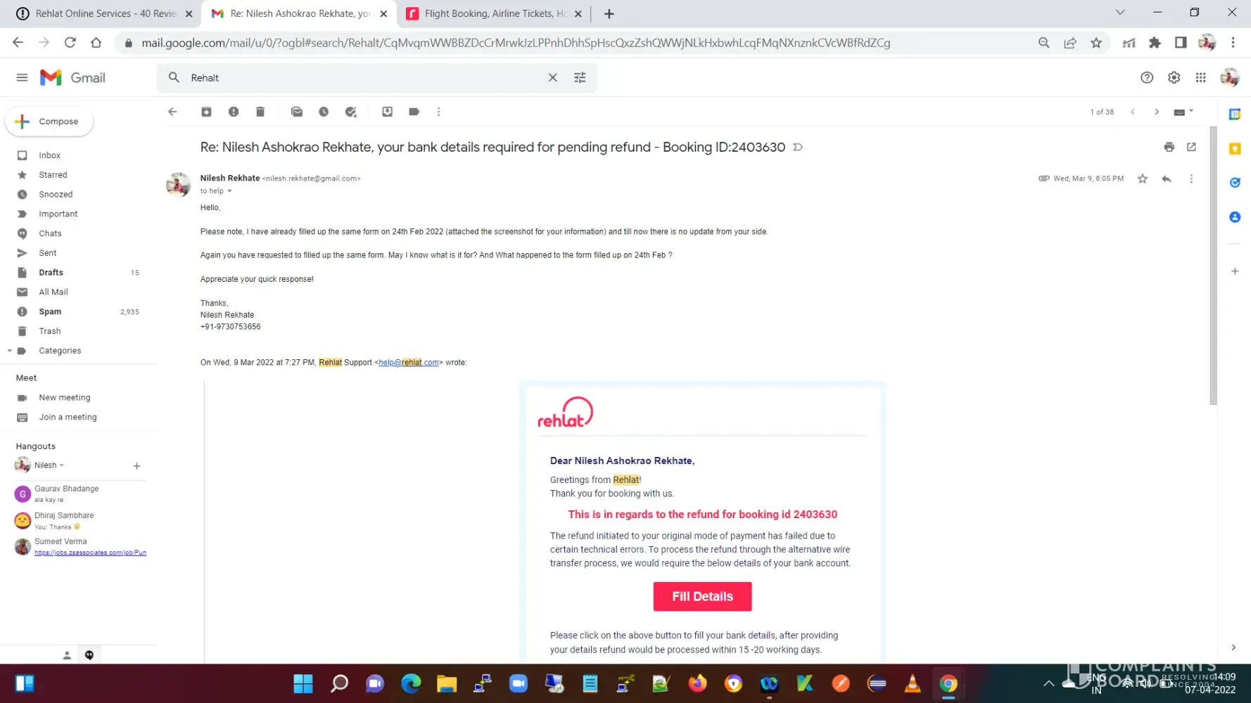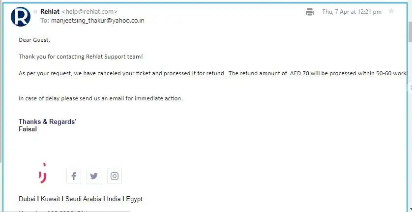 This is showing that rehlat is reluctant to refund my money to bank account and no response from finance department or poor response from customer care team. I had called numerous request as follow up for refund.