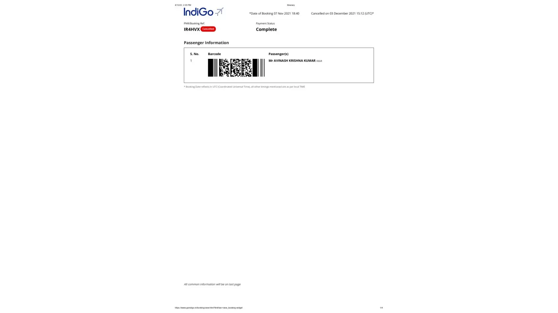 Have raised the request since January 1st, flights cancelled by airline.