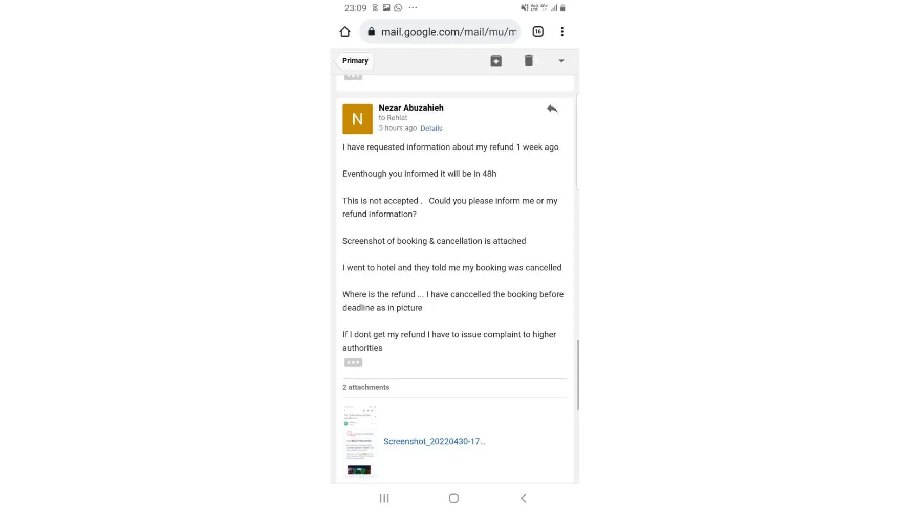 Need claimed refund for booking id 1489439