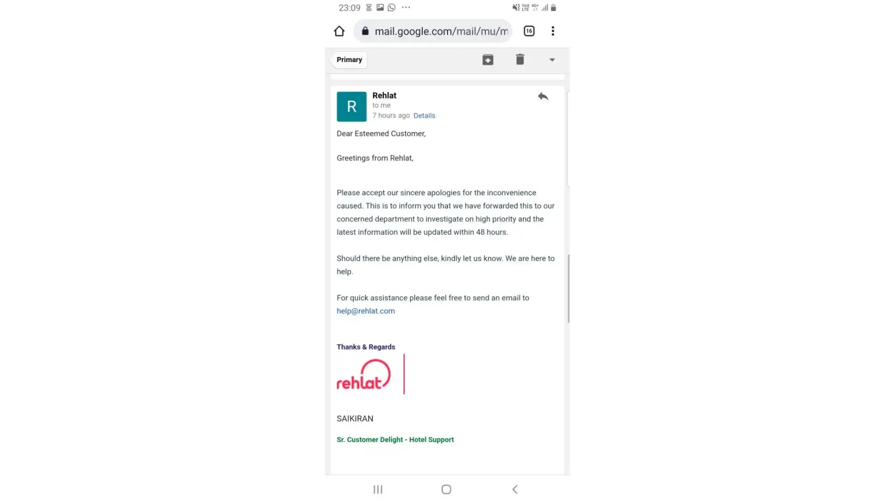 Rehlat offers customer support through phone, email, and live chat, providing assistance for booking and travel-related inquiries.