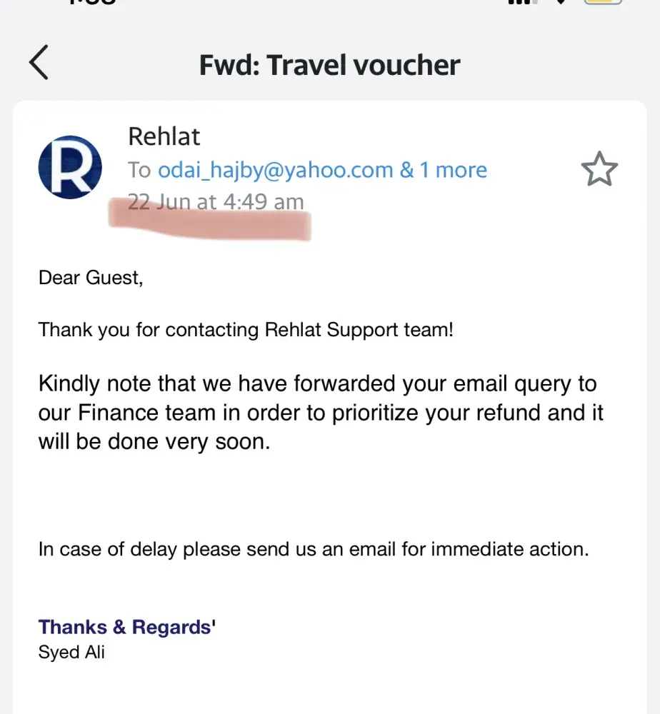 For one year plus am claiming my refund, I sent more than 100 emails and several phone calls until I reached a limit that I know all Rehlat agents names one by one. Each of them had a different answer from the other and passing me to each other like ping-pong. After repeating same story to each one of them, the only ( Automatic) reply i get is that we are rectifying the issue and will get back to you, and of course nobody gets back!