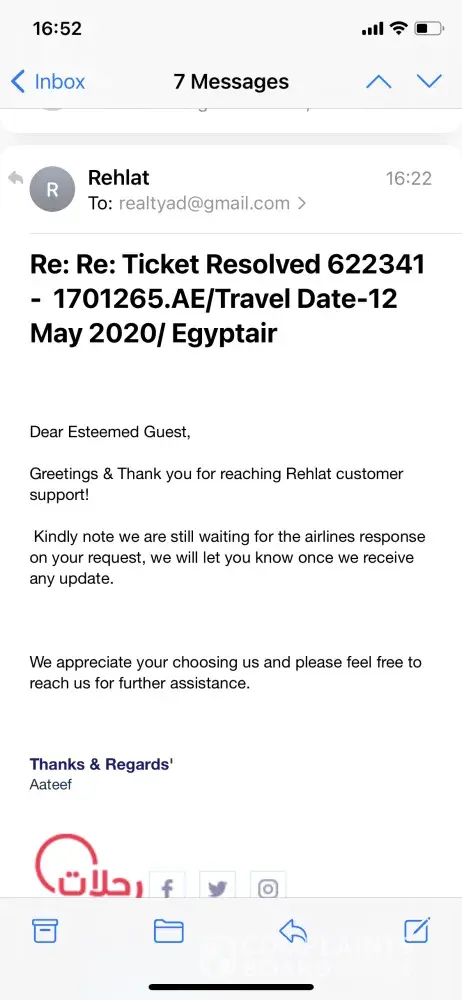 After flights resumption on Sunday 3rd, I sent an email to [protected]@rehlat.com to update and confirm my new travel date (8th Jan.) with the airlines but no response, only automated messages.