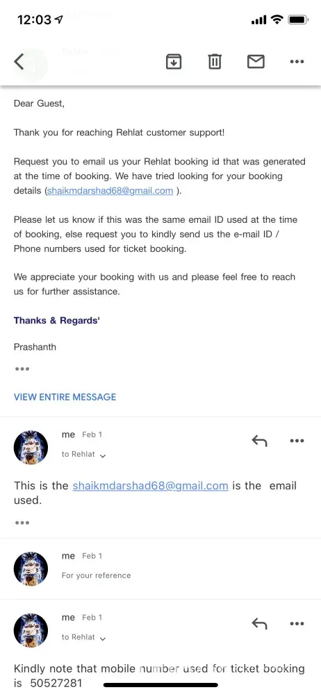 I had 3 ticket bookings with Rehlat under Booking ID's: