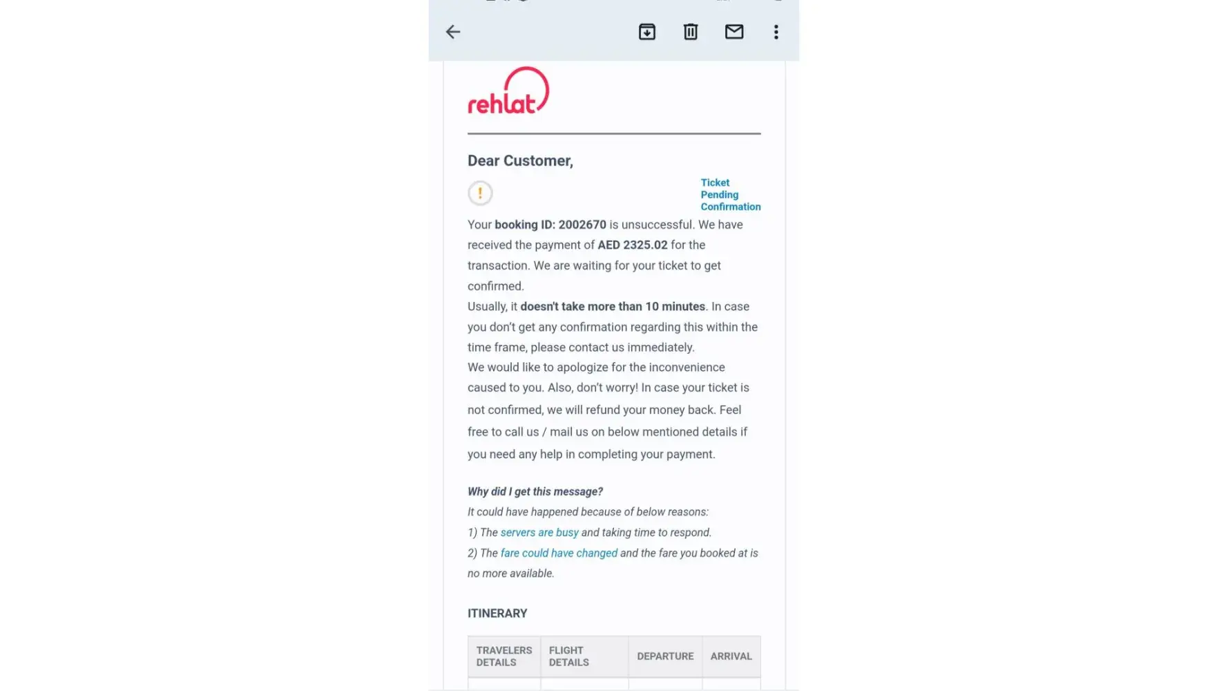 When I called the airline to check, they told me to contact Rehlat as without ticket issued I can't travel and it will be useless to go to the airport.